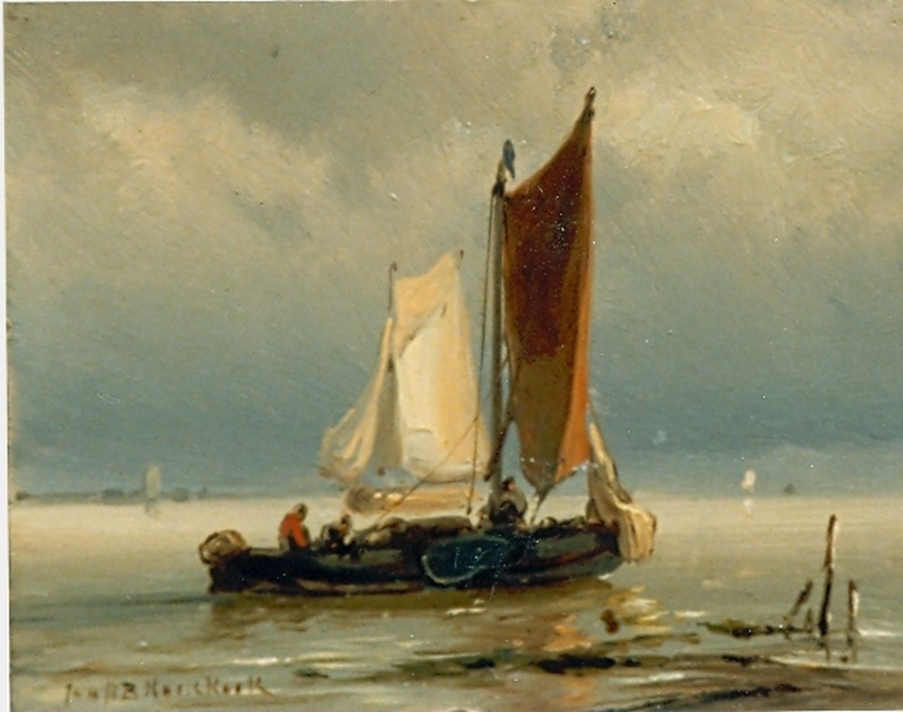 Jan H.B. Koekkoek, der dritte Sohn des Marinemalers Hermanus Koekkoek Sr., war der vielseitigste der vier Söhne von Hermanus Koekkoek. Auch er wurde von seinem Vater unterrichtet, dessen Einfluss noch heute deutlich im sorgfältigen Malstil und den feinen Details seiner frühen See- und Flussansichten zu erkennen ist. In späteren Jahren gründete Jan H.B. immer mehr im Einklang mit der Haager Schule zog er nach Gooi und malte Strand- und Meereslandschaften sowie Szenen aus dem Fischerleben in einem lockeren Malstil und einer hellen Farbpalette. Damit ist er ein gutes Beispiel dafür, wie sich die Malerei Ende des 19. Jahrhunderts veränderte. Obwohl die 'Romantik' noch nicht aus seinen Gemälden verschwunden war, ist klar, dass langsam eine neue Ära anbrechen würde.