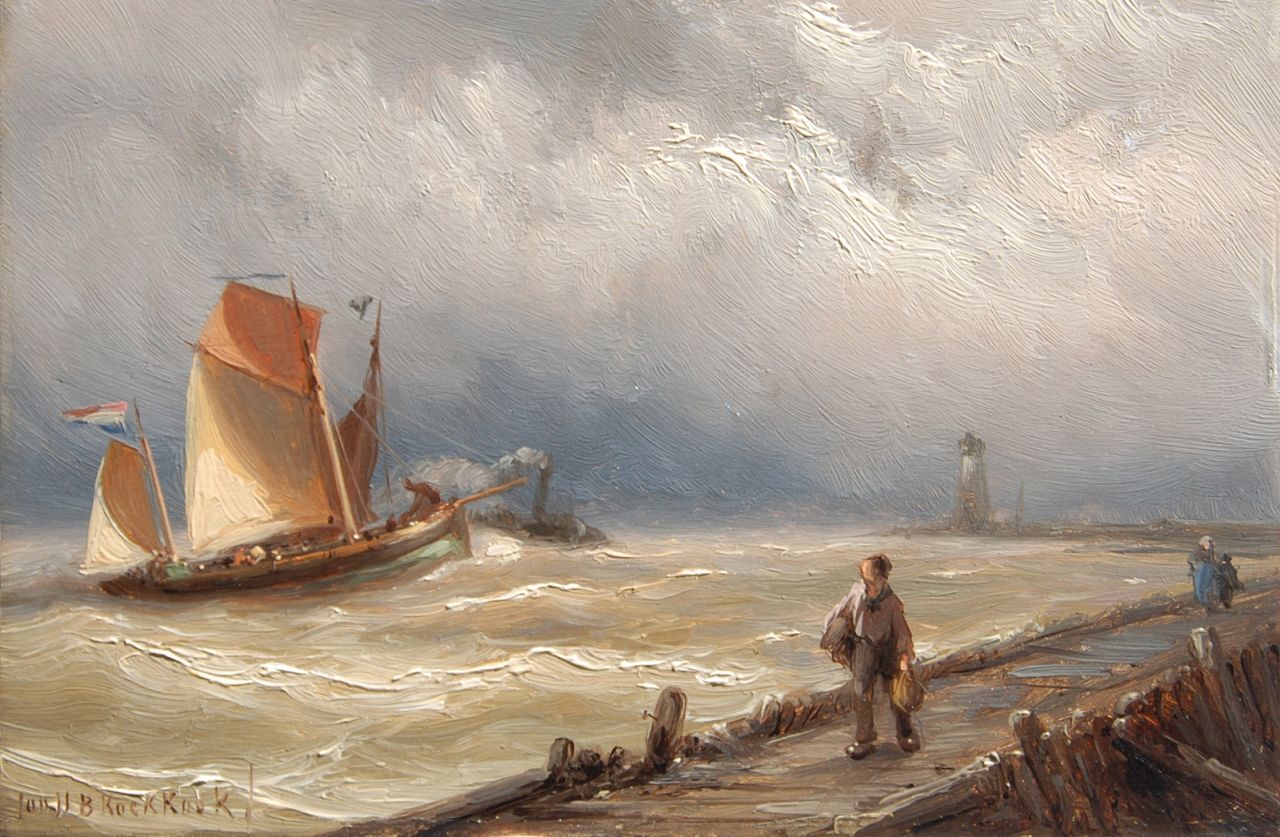 Jan H.B. Koekkoek, der dritte Sohn des Marinemalers Hermanus Koekkoek Sr., war der vielseitigste der vier Söhne von Hermanus Koekkoek. Auch er wurde von seinem Vater unterrichtet, dessen Einfluss noch heute deutlich im sorgfältigen Malstil und den feinen Details seiner frühen See- und Flussansichten zu erkennen ist. In späteren Jahren gründete Jan H.B. immer mehr im Einklang mit der Haager Schule zog er nach Gooi und malte Strand- und Meereslandschaften sowie Szenen aus dem Fischerleben in einem lockeren Malstil und einer hellen Farbpalette. Damit ist er ein gutes Beispiel dafür, wie sich die Malerei Ende des 19. Jahrhunderts veränderte. Obwohl die 'Romantik' noch nicht aus seinen Gemälden verschwunden war, ist klar, dass langsam eine neue Ära anbrechen würde.