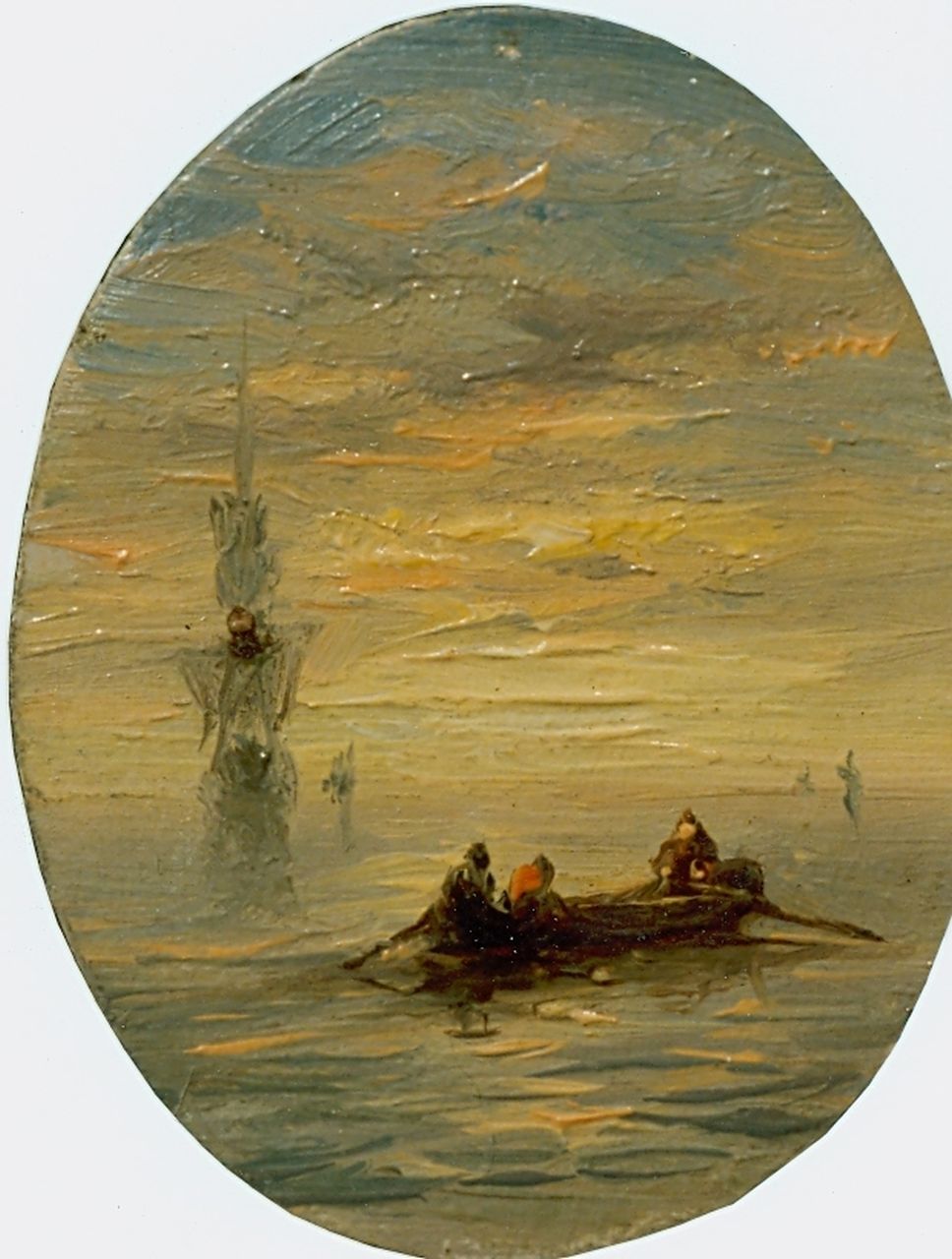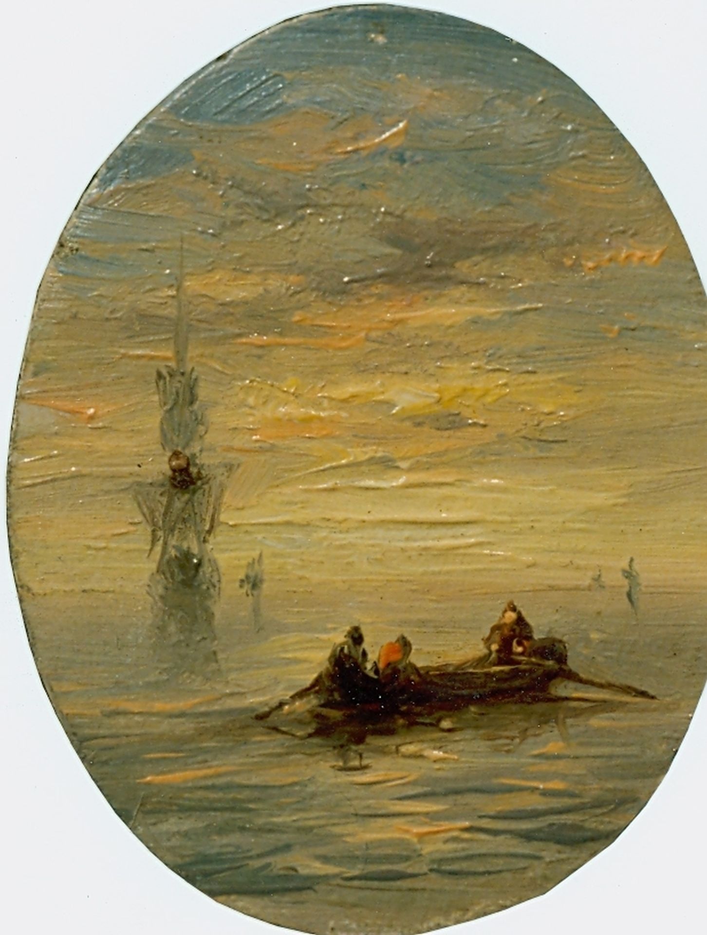 Figures in a barge at sunset