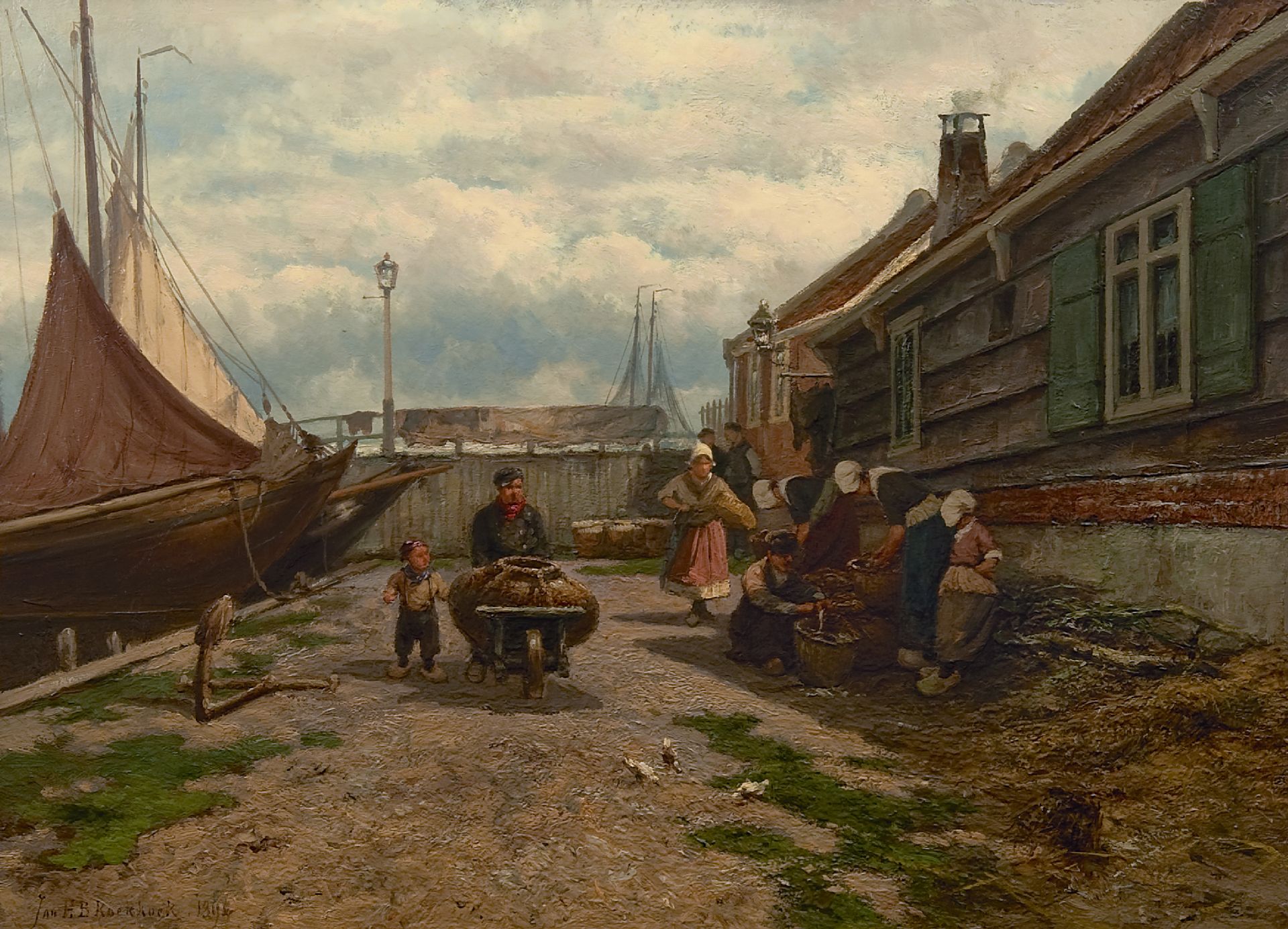 Jan H.B. Koekkoek Kunstwerk • Gemälde • zuvor zu verkaufen Fischverkäuferinnen in einer Zuiderzeehafen