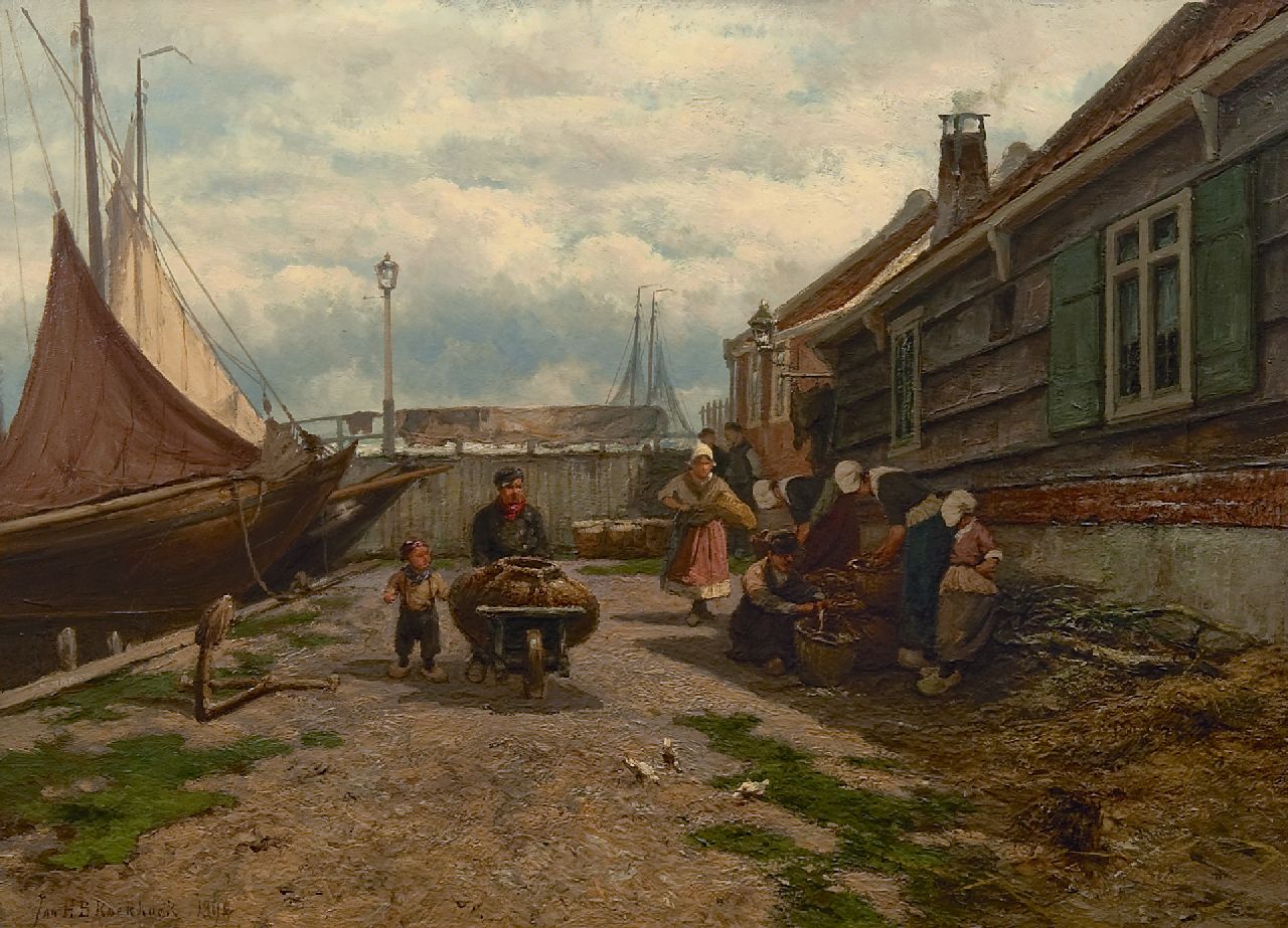 Jan H.B. Koekkoek Kunstwerk • Gemälde • zu verkaufen Fischverkäuferinnen in einer Zuiderzeehafen