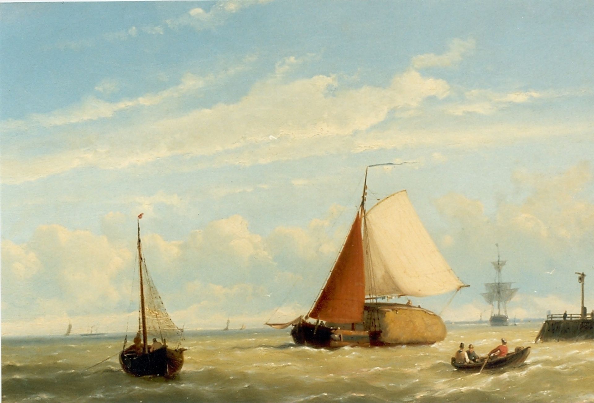 Jan H.B. Koekkoek, der dritte Sohn des Marinemalers Hermanus Koekkoek Sr., war der vielseitigste der vier Söhne von Hermanus Koekkoek. Auch er wurde von seinem Vater unterrichtet, dessen Einfluss noch heute deutlich im sorgfältigen Malstil und den feinen Details seiner frühen See- und Flussansichten zu erkennen ist. In späteren Jahren gründete Jan H.B. immer mehr im Einklang mit der Haager Schule zog er nach Gooi und malte Strand- und Meereslandschaften sowie Szenen aus dem Fischerleben in einem lockeren Malstil und einer hellen Farbpalette. Damit ist er ein gutes Beispiel dafür, wie sich die Malerei Ende des 19. Jahrhunderts veränderte. Obwohl die 'Romantik' noch nicht aus seinen Gemälden verschwunden war, ist klar, dass langsam eine neue Ära anbrechen würde.