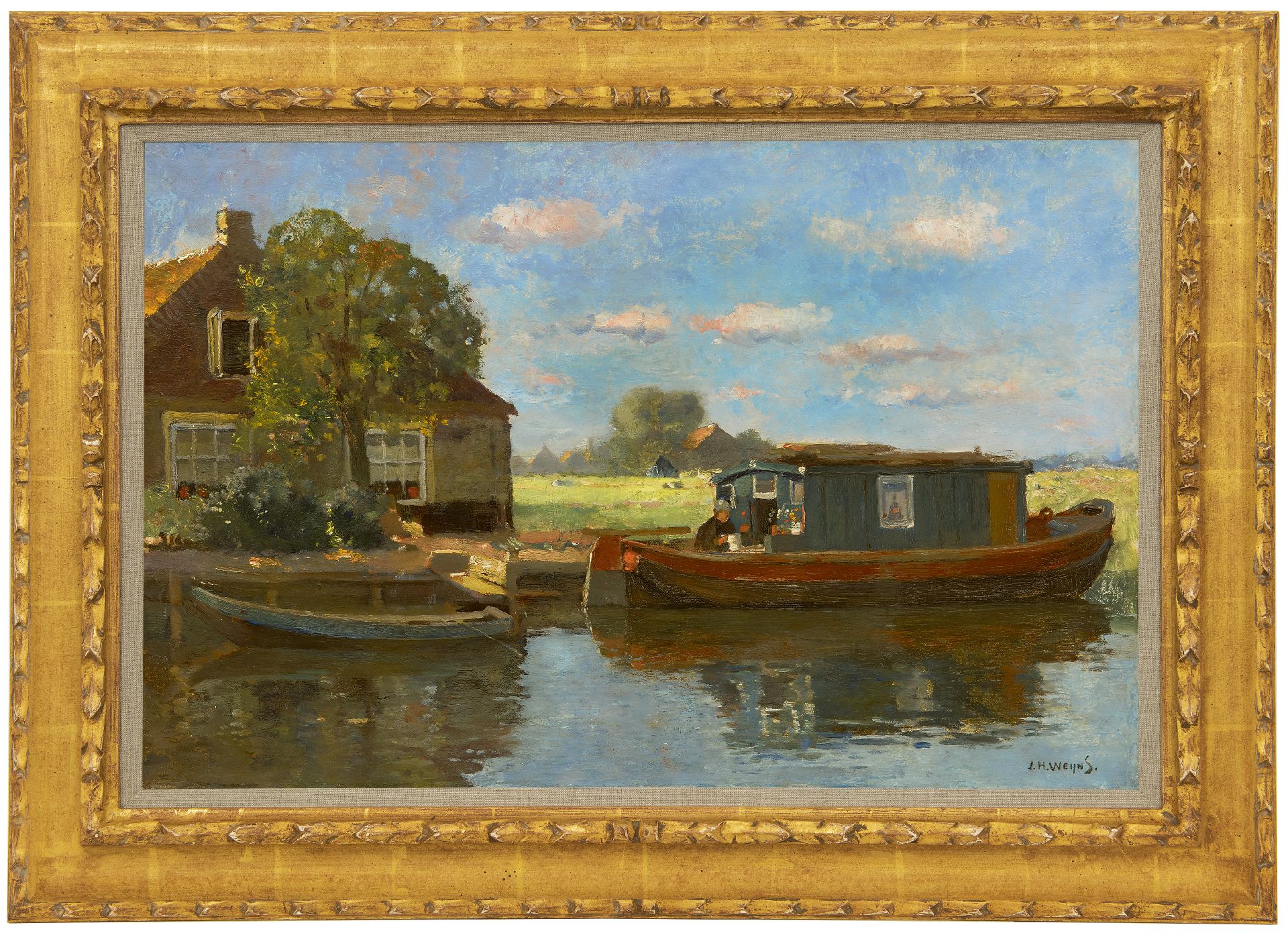 Jan Harm Weijns Kunstwerk • Gemälde • zu verkaufen Angelegtes Schiff in Katwijk aan den Rhijn