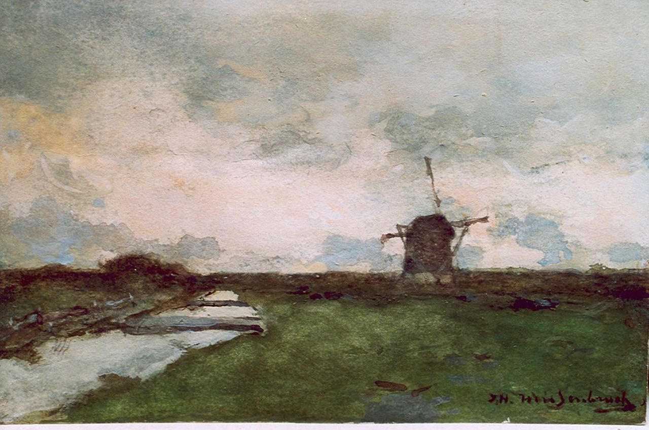 Jan Hendrik Weissenbruch wird als einer der begabtesten Maler der Haagse School betrachtet. Er malte vor allen Dingen Landschaften in der Umgebung von Haag und im Polderland um Boskoop und Gouda. Seine grosse Kraft war die Wiedergabe des charakteristischen holländischen Lichtes, manchmal klar, dann wieder diffus und dunstig. Auch die Lüfte fesselten ihn. 'Licht und Luft sind die grossen Zauberer’, sagte er. 'Sowohl graue Regenlüfte wie klare Wolkenlüfte an einem sommerlichen Tag. Maler können nie genug nach der Luft schauen‘. Weissenbruch unterrichtete Victor Bauffe und Theophile de Bock.