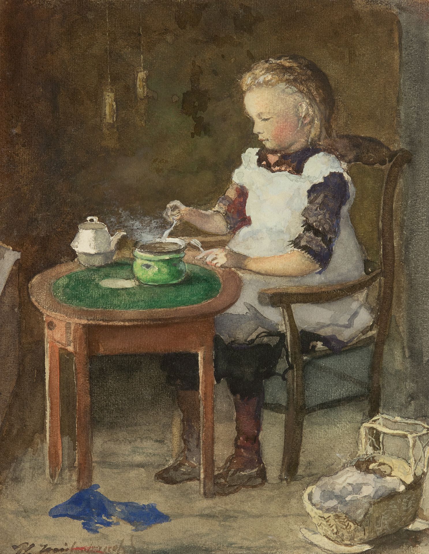 Jan Hendrik Weissenbruch Kunstwerk • Aquarell • Zeichnung • zu verkaufen Pfannkuchen backen