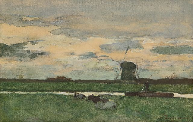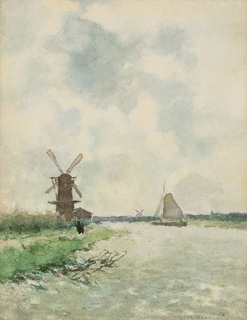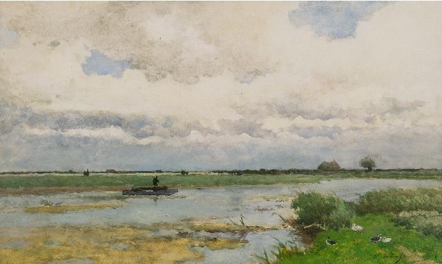 Jan Hendrik Weissenbruch wird als einer der begabtesten Maler der Haagse School betrachtet. Er malte vor allen Dingen Landschaften in der Umgebung von Haag und im Polderland um Boskoop und Gouda. Seine grosse Kraft war die Wiedergabe des charakteristischen holländischen Lichtes, manchmal klar, dann wieder diffus und dunstig. Auch die Lüfte fesselten ihn. 'Licht und Luft sind die grossen Zauberer’, sagte er. 'Sowohl graue Regenlüfte wie klare Wolkenlüfte an einem sommerlichen Tag. Maler können nie genug nach der Luft schauen‘. Weissenbruch unterrichtete Victor Bauffe und Theophile de Bock.