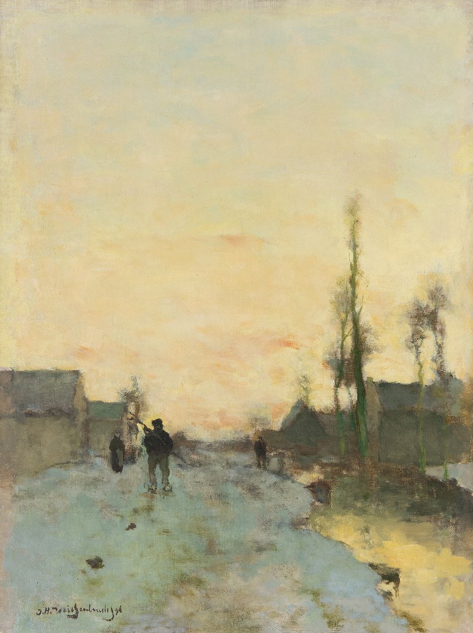 Jan Hendrik Weissenbruch wird als einer der begabtesten Maler der Haagse School betrachtet. Er malte vor allen Dingen Landschaften in der Umgebung von Haag und im Polderland um Boskoop und Gouda. Seine grosse Kraft war die Wiedergabe des charakteristischen holländischen Lichtes, manchmal klar, dann wieder diffus und dunstig. Auch die Lüfte fesselten ihn. 'Licht und Luft sind die grossen Zauberer’, sagte er. 'Sowohl graue Regenlüfte wie klare Wolkenlüfte an einem sommerlichen Tag. Maler können nie genug nach der Luft schauen‘. Weissenbruch unterrichtete Victor Bauffe und Theophile de Bock.