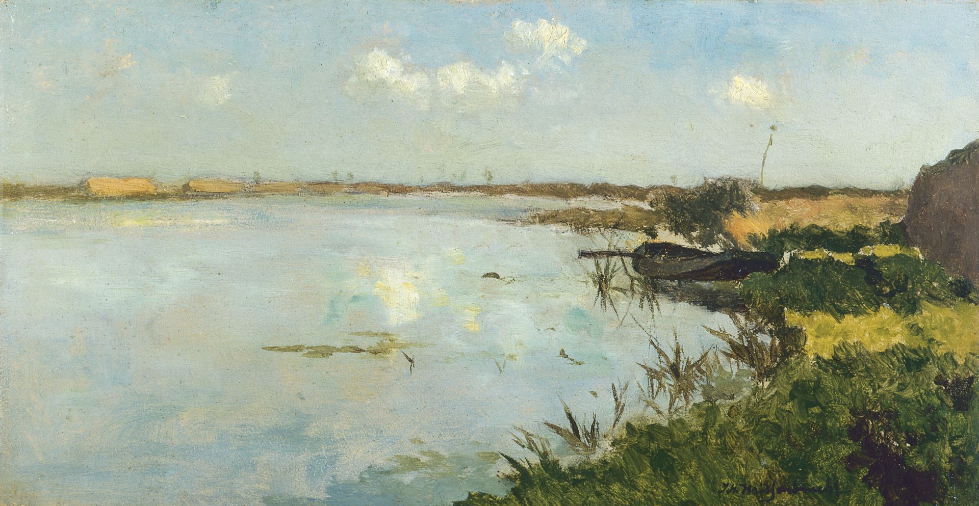 Jan Hendrik Weissenbruch wird als einer der begabtesten Maler der Haagse School betrachtet. Er malte vor allen Dingen Landschaften in der Umgebung von Haag und im Polderland um Boskoop und Gouda. Seine grosse Kraft war die Wiedergabe des charakteristischen holländischen Lichtes, manchmal klar, dann wieder diffus und dunstig. Auch die Lüfte fesselten ihn. 'Licht und Luft sind die grossen Zauberer’, sagte er. 'Sowohl graue Regenlüfte wie klare Wolkenlüfte an einem sommerlichen Tag. Maler können nie genug nach der Luft schauen‘. Weissenbruch unterrichtete Victor Bauffe und Theophile de Bock.