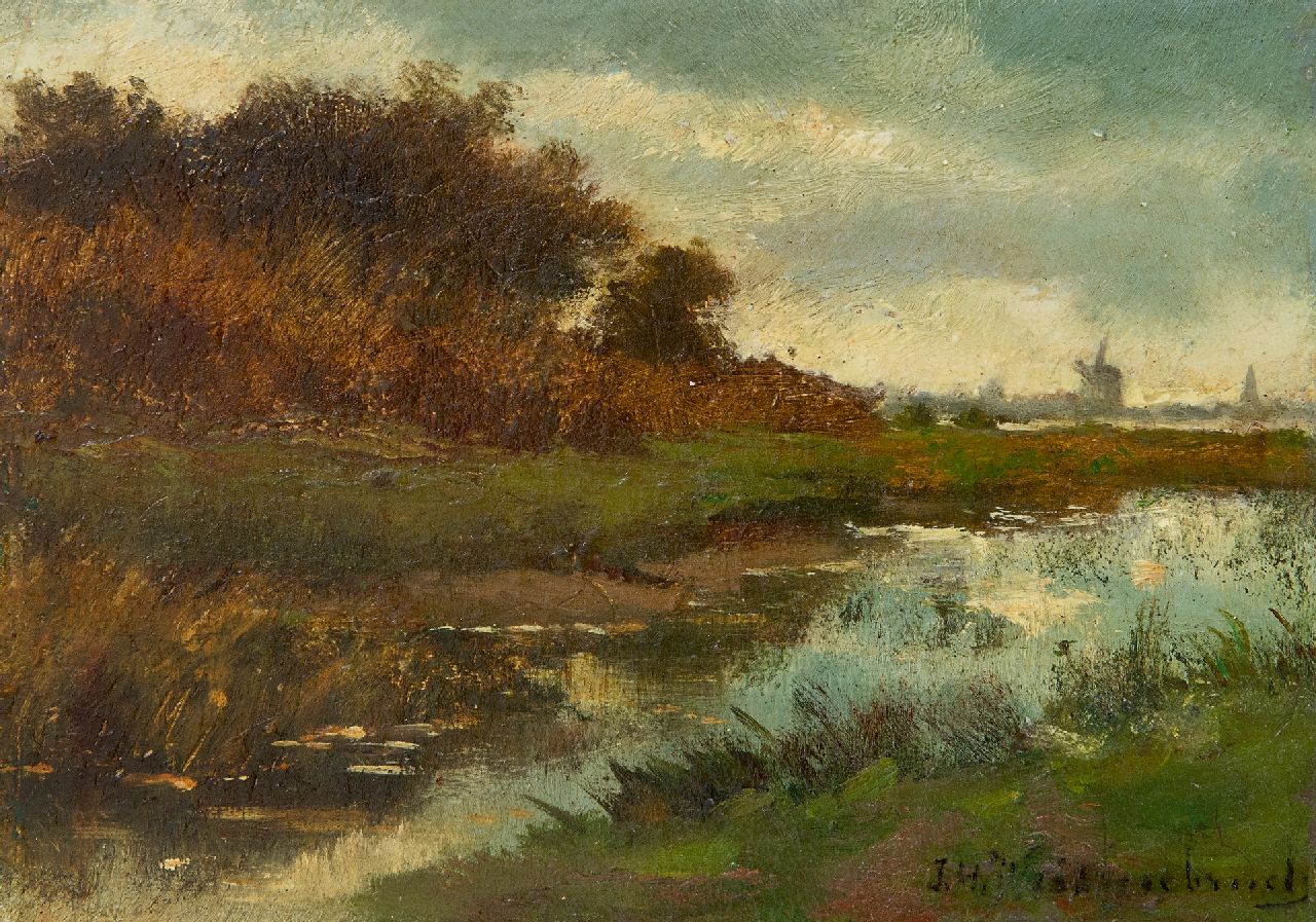 Jan Hendrik Weissenbruch wird als einer der begabtesten Maler der Haagse School betrachtet. Er malte vor allen Dingen Landschaften in der Umgebung von Haag und im Polderland um Boskoop und Gouda. Seine grosse Kraft war die Wiedergabe des charakteristischen holländischen Lichtes, manchmal klar, dann wieder diffus und dunstig. Auch die Lüfte fesselten ihn. 'Licht und Luft sind die grossen Zauberer’, sagte er. 'Sowohl graue Regenlüfte wie klare Wolkenlüfte an einem sommerlichen Tag. Maler können nie genug nach der Luft schauen‘. Weissenbruch unterrichtete Victor Bauffe und Theophile de Bock.