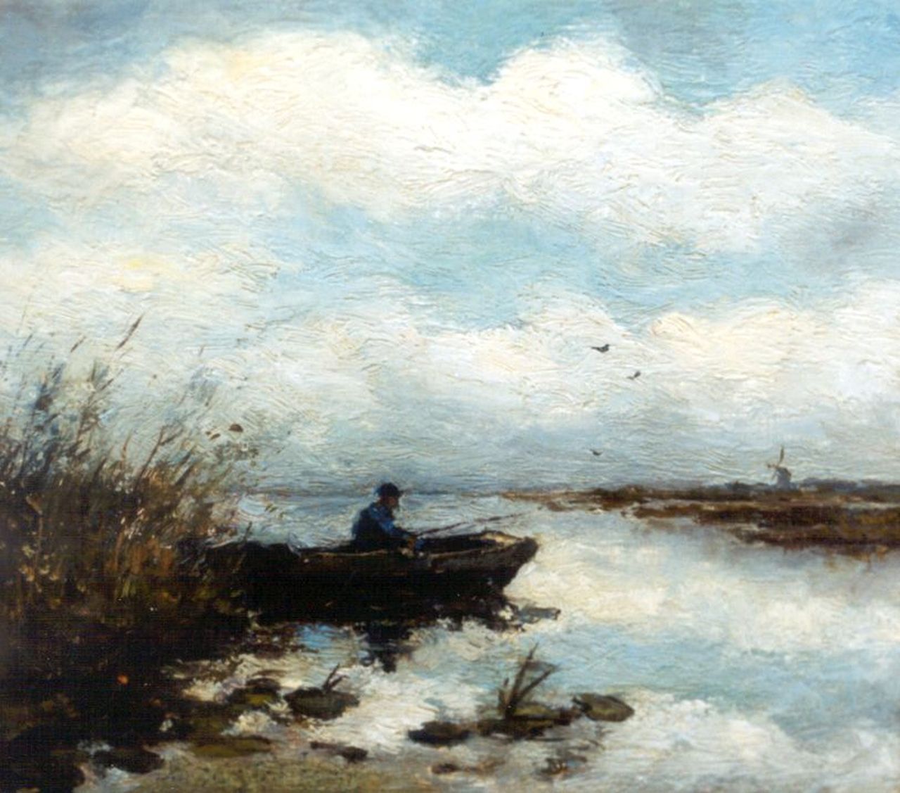 Jan Hendrik Weissenbruch Kunstwerk • Gemälde • zuvor zu verkaufen A polder landscape with a fisherman in a barge