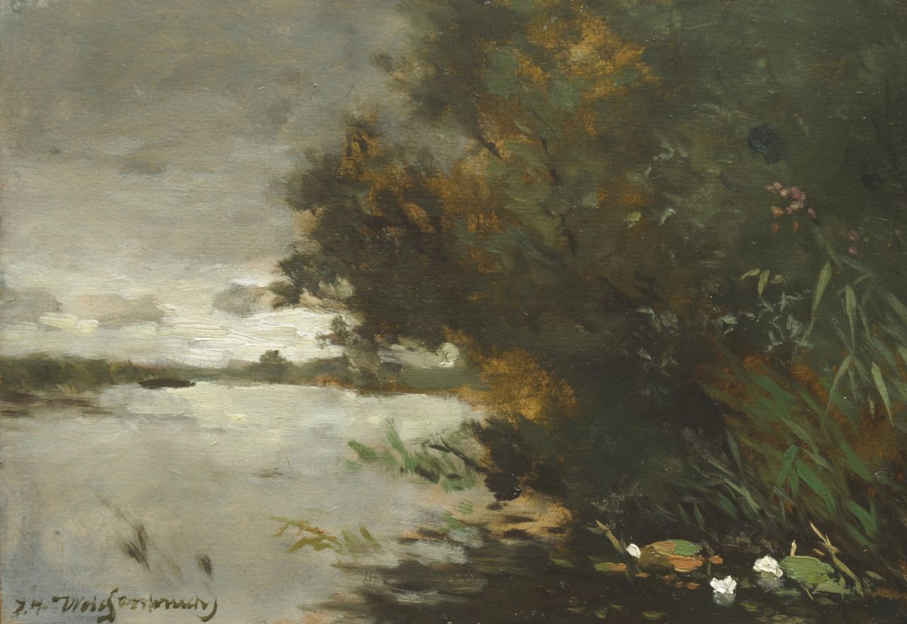 Jan Hendrik Weissenbruch wird als einer der begabtesten Maler der Haagse School betrachtet. Er malte vor allen Dingen Landschaften in der Umgebung von Haag und im Polderland um Boskoop und Gouda. Seine grosse Kraft war die Wiedergabe des charakteristischen holländischen Lichtes, manchmal klar, dann wieder diffus und dunstig. Auch die Lüfte fesselten ihn. 'Licht und Luft sind die grossen Zauberer’, sagte er. 'Sowohl graue Regenlüfte wie klare Wolkenlüfte an einem sommerlichen Tag. Maler können nie genug nach der Luft schauen‘. Weissenbruch unterrichtete Victor Bauffe und Theophile de Bock.