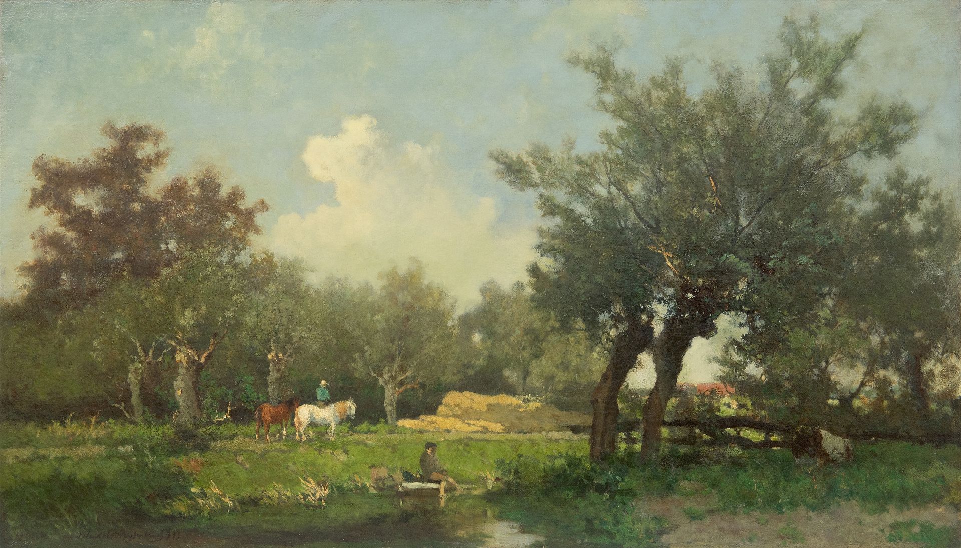 Jan Hendrik Weissenbruch wird als einer der begabtesten Maler der Haagse School betrachtet. Er malte vor allen Dingen Landschaften in der Umgebung von Haag und im Polderland um Boskoop und Gouda. Seine grosse Kraft war die Wiedergabe des charakteristischen holländischen Lichtes, manchmal klar, dann wieder diffus und dunstig. Auch die Lüfte fesselten ihn. 'Licht und Luft sind die grossen Zauberer’, sagte er. 'Sowohl graue Regenlüfte wie klare Wolkenlüfte an einem sommerlichen Tag. Maler können nie genug nach der Luft schauen‘. Weissenbruch unterrichtete Victor Bauffe und Theophile de Bock.