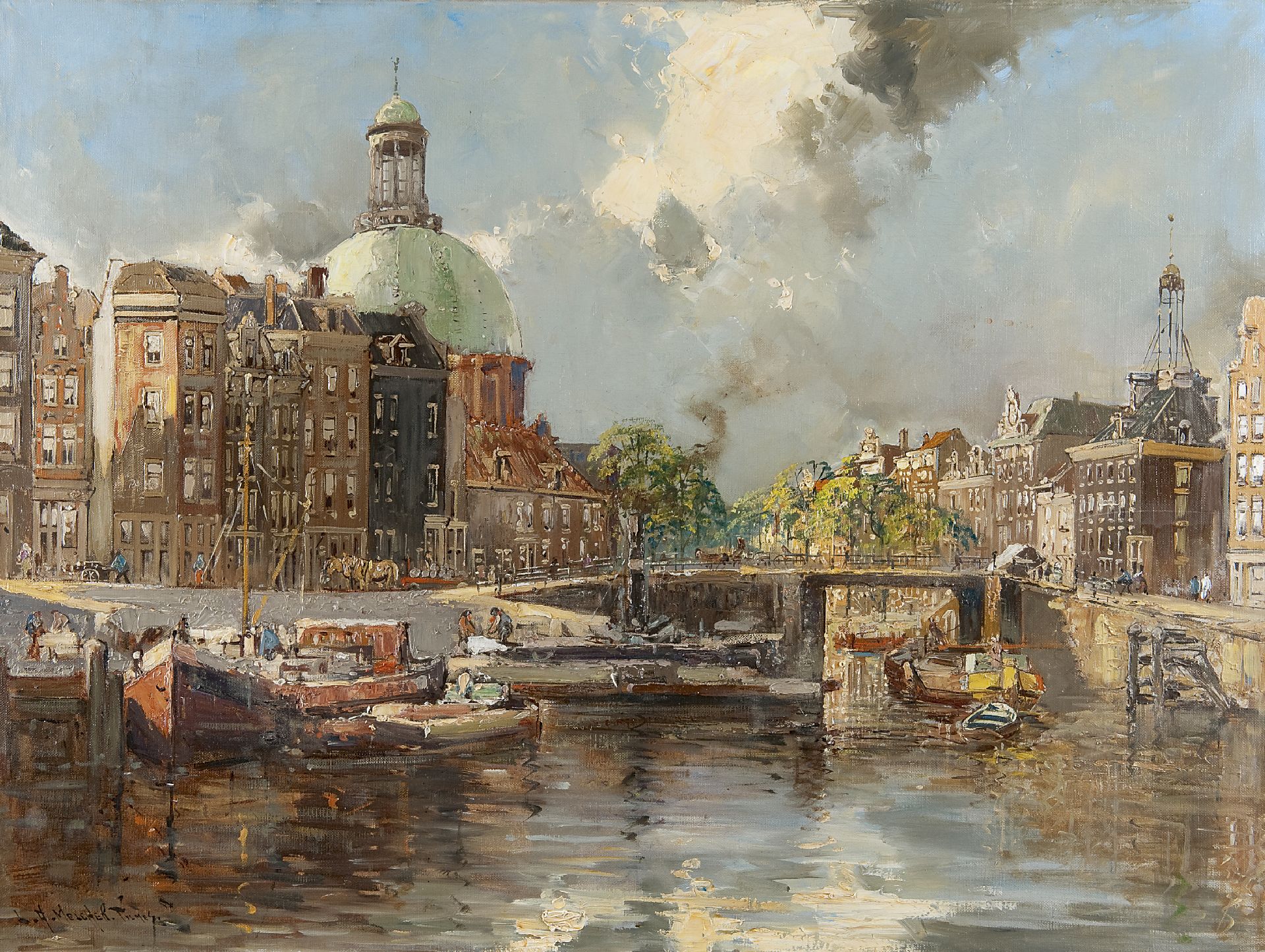 Jan Hermanus Melcher Tilmes Kunstwerk • Gemälde • zuvor zu verkaufen View on the Singel, Amsterdam, with the Ronde Lutherse Kerk