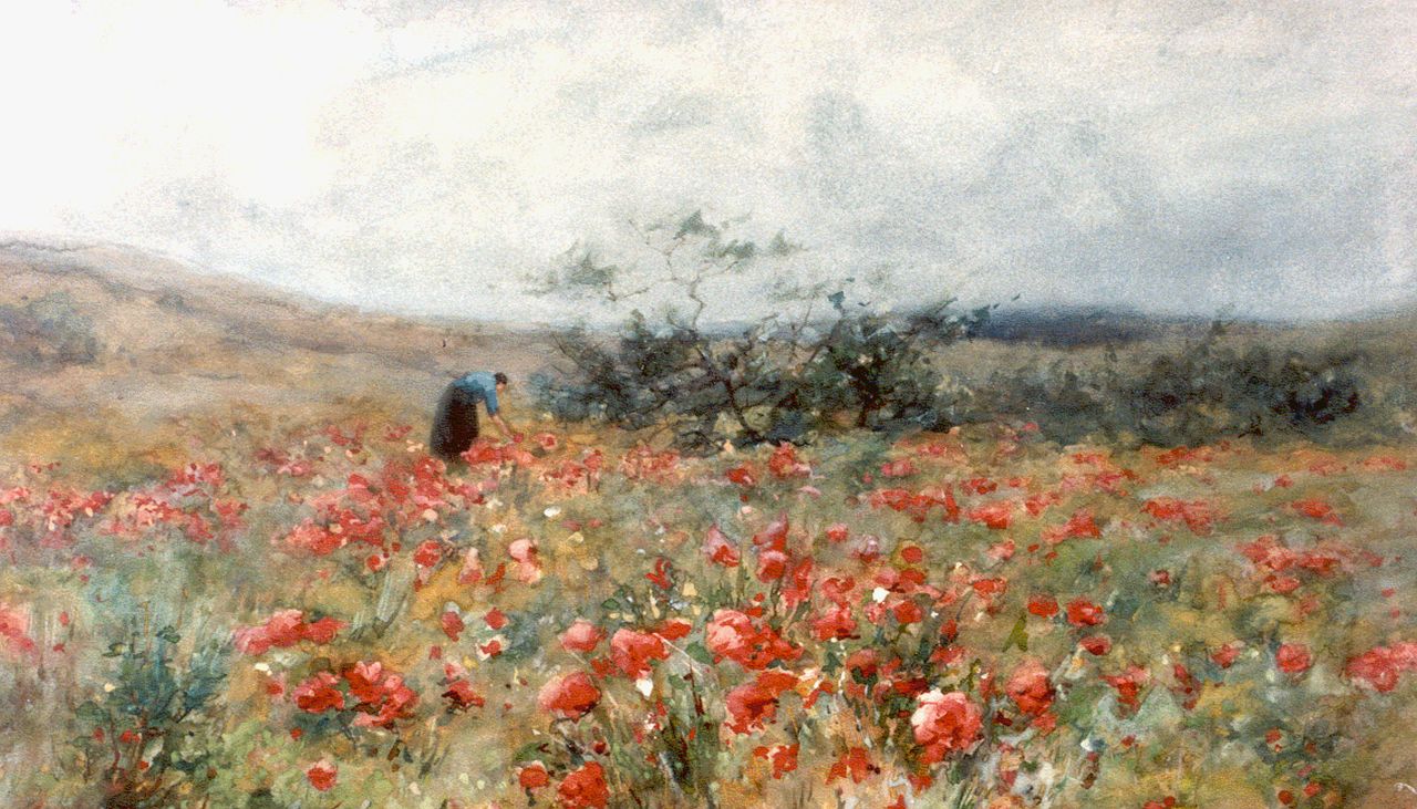 Jan Hillebrand Wijsmuller Kunstwerk • Aquarell • Zeichnung • zuvor zu verkaufen A field with poppies