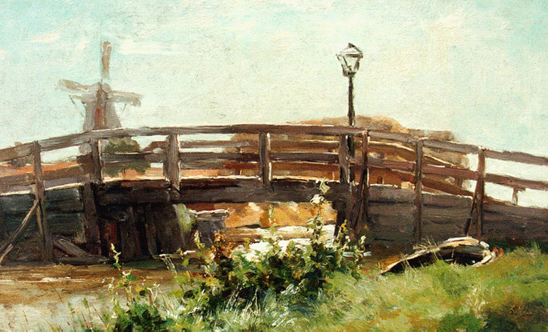 Jan Hillebrand Wijsmuller Kunstwerk • Gemälde • zuvor zu verkaufen A landscape with bridge