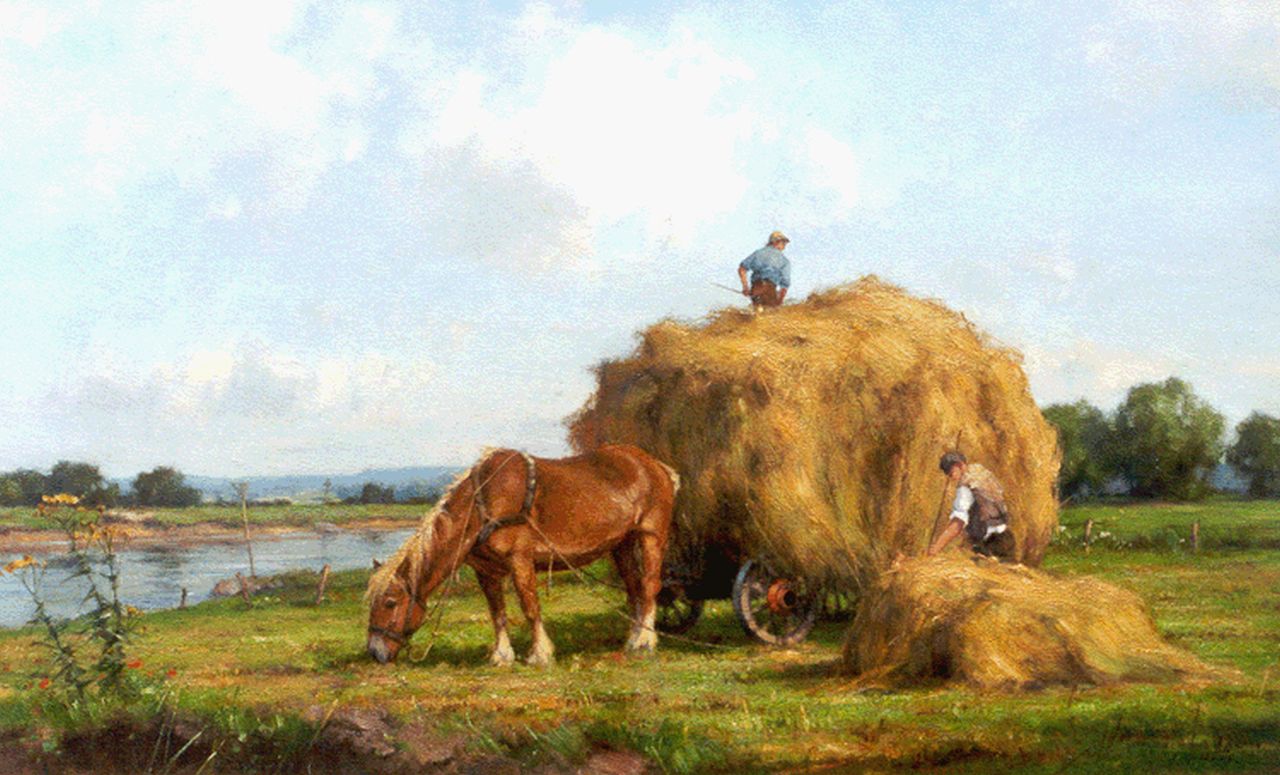 Jan Holtrup Kunstwerk • Gemälde • zuvor zu verkaufen A haycart, with the river IJssel beyond