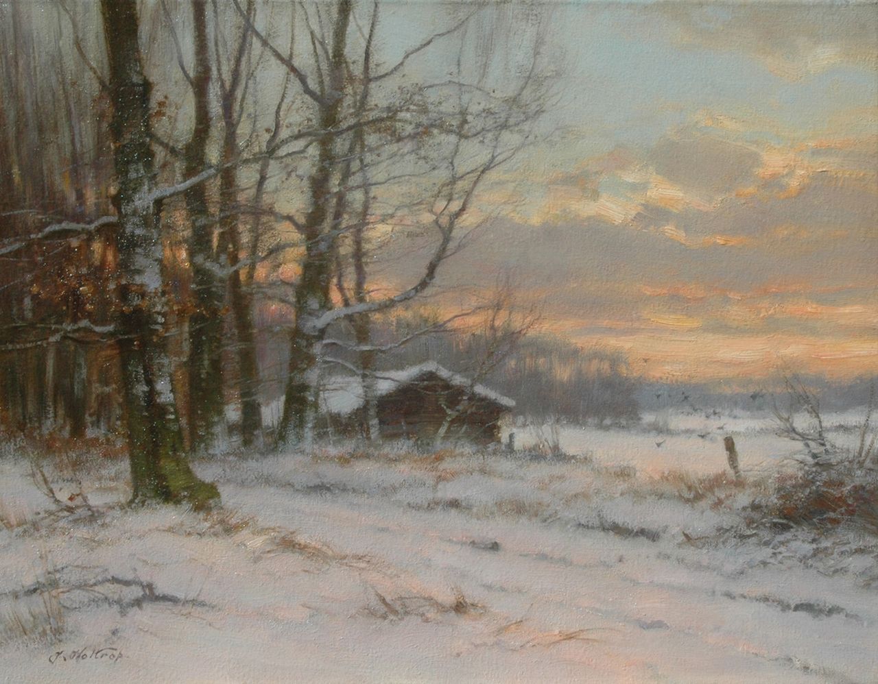 Jan Holtrup Kunstwerk • Gemälde • zuvor zu verkaufen Landscape in winter at dusk