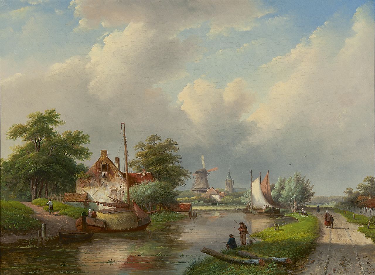 Jan Jacob Spohler Kunstwerk • Gemälde • zuvor zu verkaufen A river landscape in summer