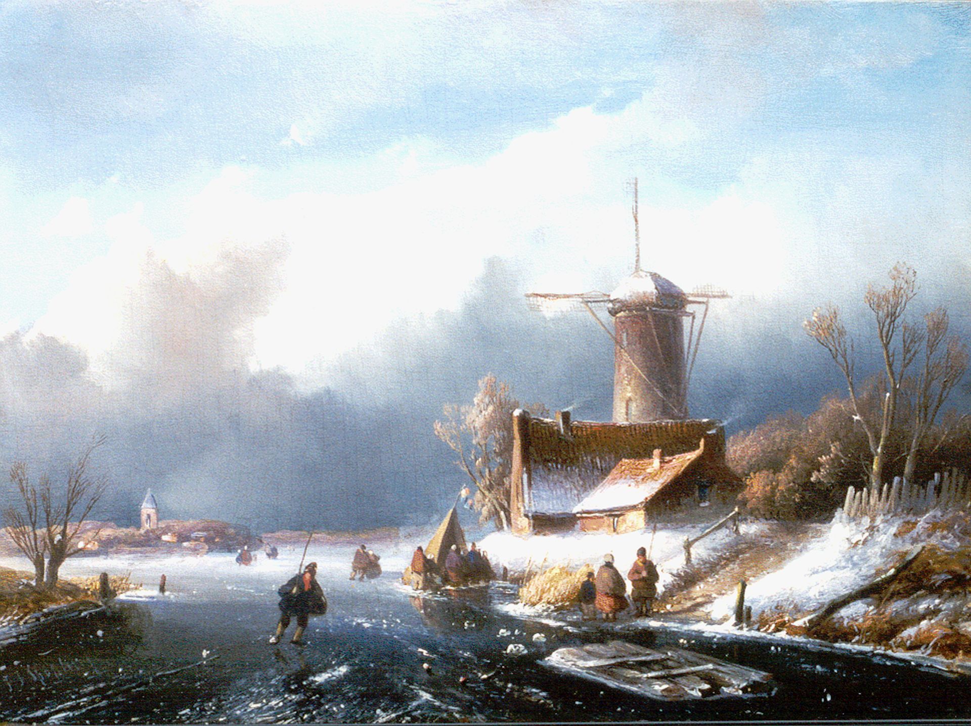 Jan Jacob Spohler Kunstwerk • Gemälde • zuvor zu verkaufen A winter landscape with skaters on the ice