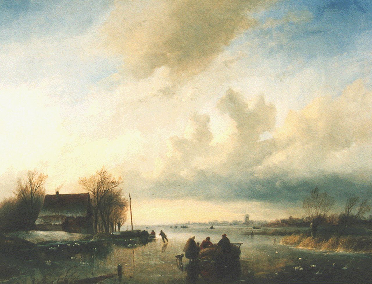 Jan Jacob Spohler Kunstwerk • Gemälde • zuvor zu verkaufen A winter landscape with skaters
