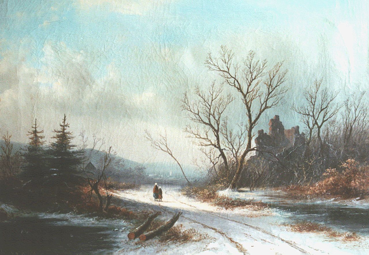 Jan Jacob Spohler Kunstwerk • Gemälde • zuvor zu verkaufen Travellers on a snow-covered path