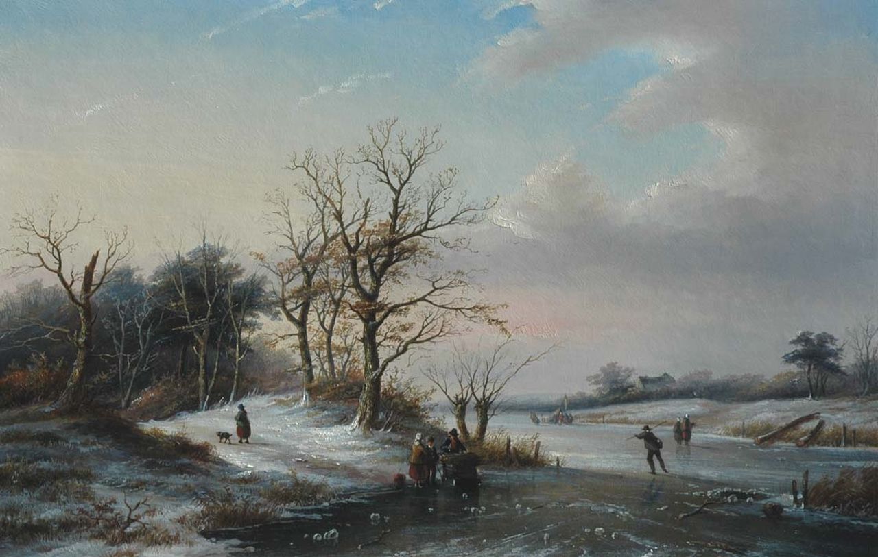 Jan Jacob Spohler Kunstwerk • Gemälde • zuvor zu verkaufen Winter landscape with skaters on the ice