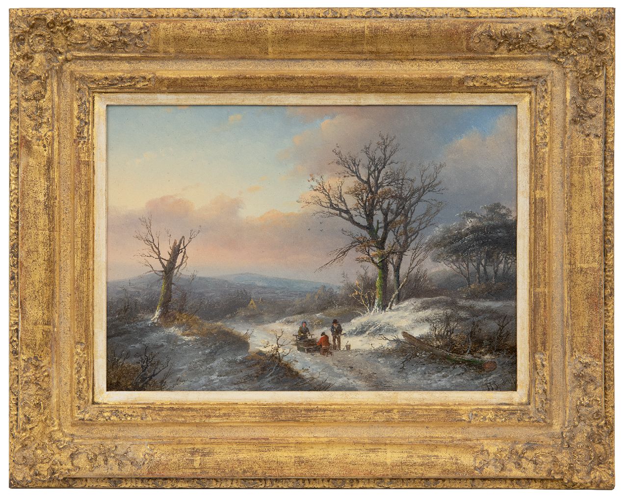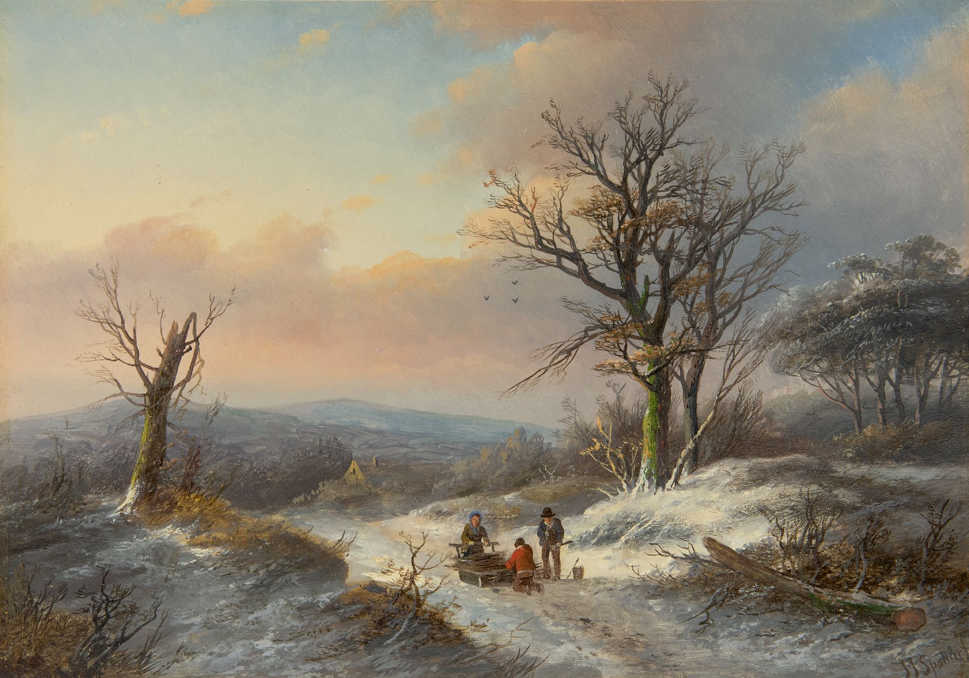 Jan Jacob Spohler Kunstwerk • Gemälde • zuvor zu verkaufen Winterlandschaf met Holzsammlern