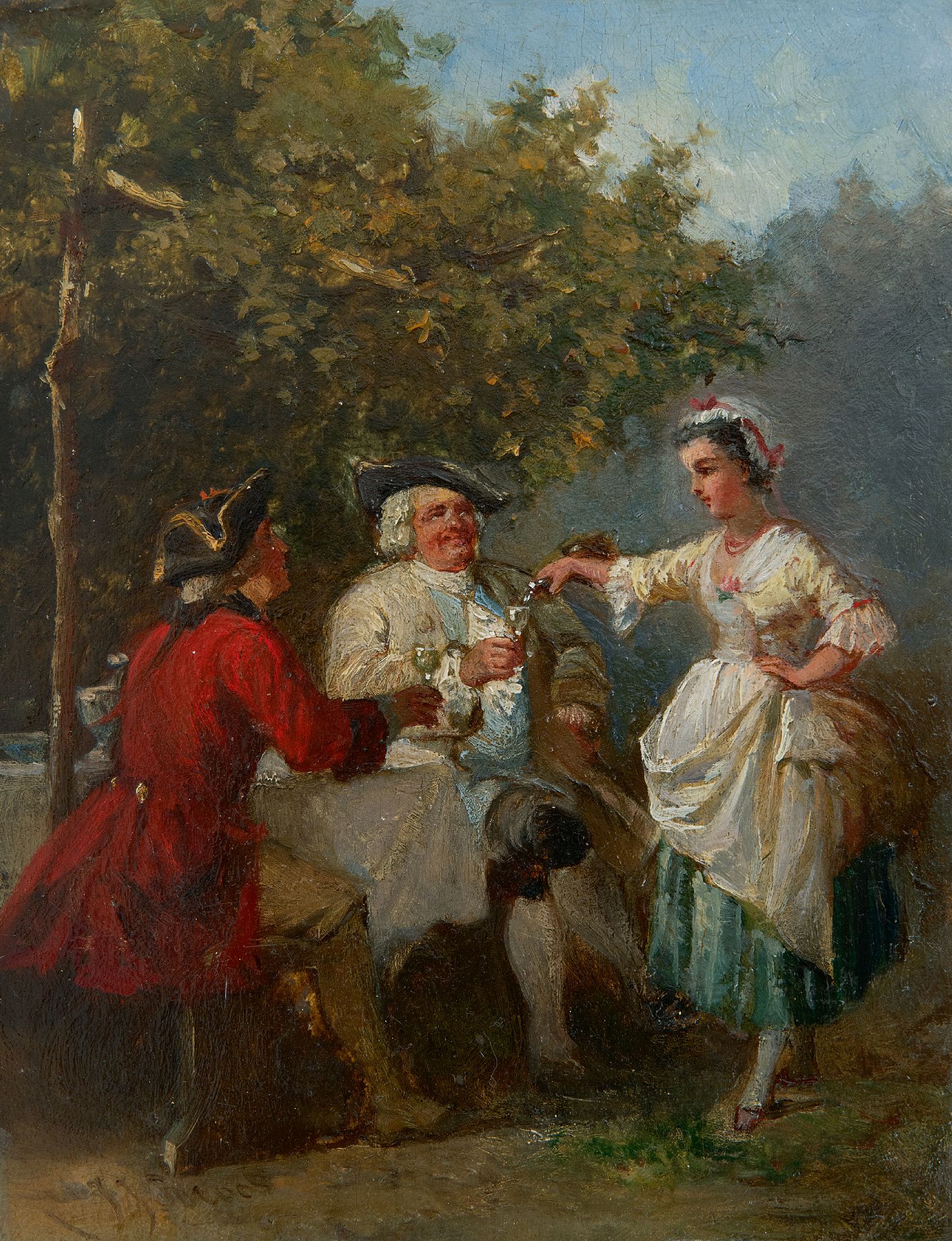 Jan Jacob Zuidema Broos, 1833 in Vorden geboren, zeigte bereits junges künstlerisches Talent und ging daher im Alter von 19 Jahren nach Amsterdam. In den folgenden zehn Jahren unternahm er Studienreisen durch Deutschland und lebte in Brüssel und Paris. Neben sorgfältig detaillierten Stadtansichten malte und zeichnete Broos Outdoor-Gesellschaften und narrative Genrestücke, oft mit einem humorvollen Unterton. In Paris malte er unter anderem Fächer für den russischen Hof. Es ist bekannt, dass er auch Operetten schrieb und Bühnenbilder malte. Um 1870 kehrte Zuidema Broos nach Paris zurück, wo er 1882 starb.