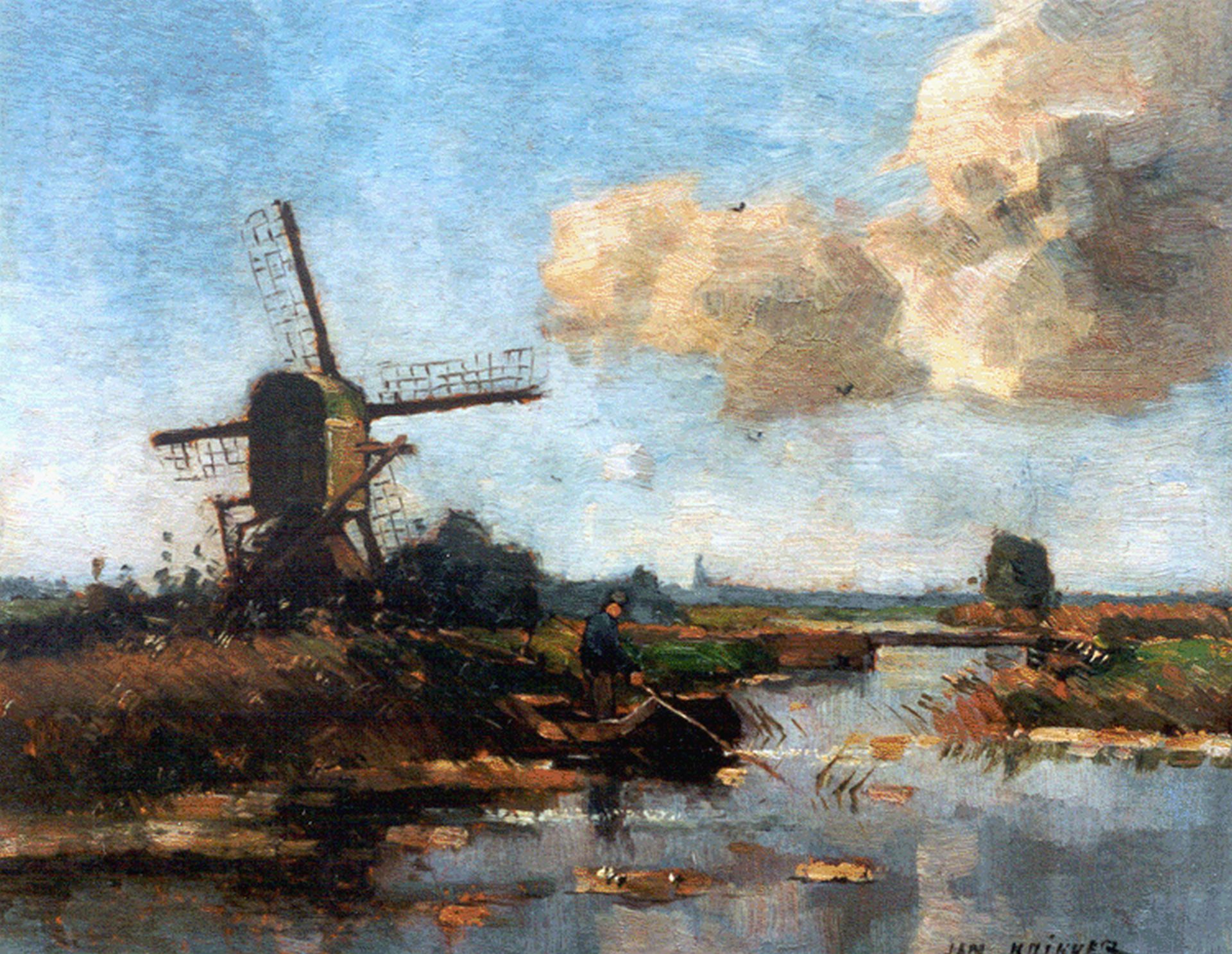 Jan Knikker sr. Kunstwerk • Gemälde • zuvor zu verkaufen A fisherman in a polder landscape