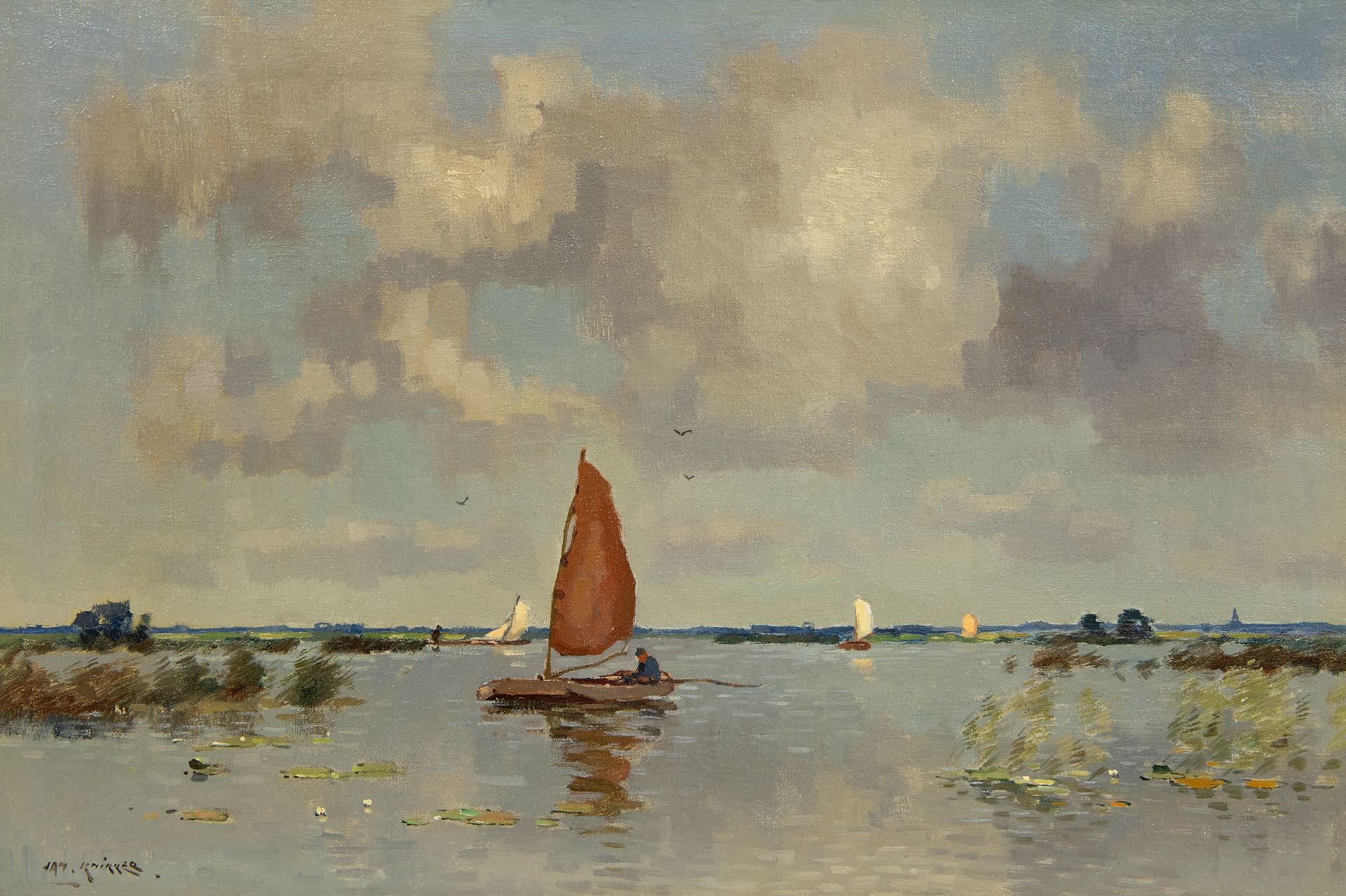 Jan Simon Knikker Sr. war einer der Maler, die die lockere Pinselführung der Haager Schule und ihre Vorliebe für die atmosphärische Darstellung der Natur im 20. Jahrhundert fortsetzten. Er gilt daher wie sein Sohn Jan Knikker Jr. als einer der 'Nachblüher' der Haager Schule. Der Maler war Autodidakt und wurde von seinem älteren Bruder Aris Knikker unterrichtet. Sein Werk unterscheidet sich von dem seines Bruders durch den breiteren Pinselstrich und eine farbenfrohere Palette. Knikker Sr. malte hauptsächlich Wasserlandschaften, Landschaften und Stadtansichten. Er lebte und arbeitete in Hillegom und Leiden und ab 1914 in Den Haag. Seine Arbeiten im Stil der Haager Schule waren im Ausland sehr gefragt. Sein Sohn, Jan Simon Knikker Jr., trat in seine Fußstapfen und gemeinsam verkauften sie ihre Werke über den Kunsthändler.
