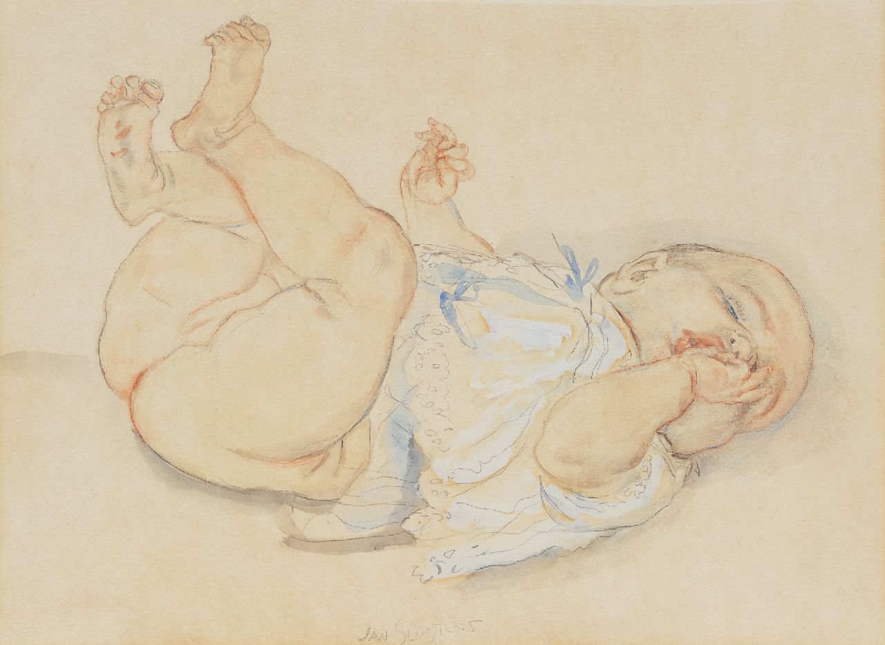 Jan Sluijters Kunstwerk • Aquarell • Zeichnung • zu verkaufen Baby, das Daumen saugt