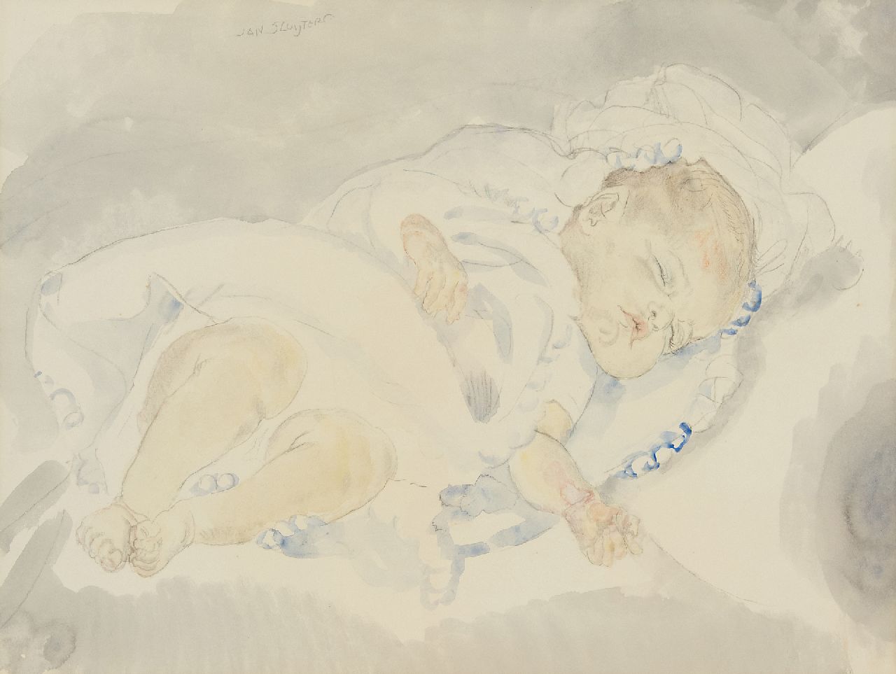 Jan Sluijters Kunstwerk • Aquarell • Zeichnung • zu verkaufen Schlafendes Kleinkind