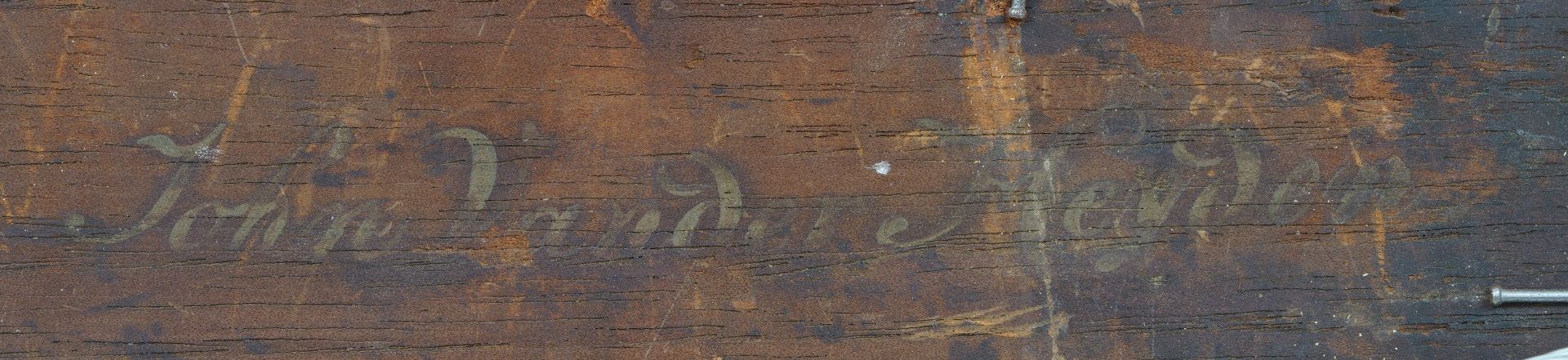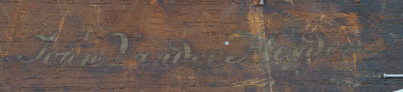 Jan ten Compe aus Amsterdam fertigte viele topografische Zeichnungen an, aber seine gemalten Stadtansichten machten ihm bei weitem den größten Ruhm. In seinen Gemälden kombiniert er die feinen Details der Gebäude mit einem wunderschön ausgearbeiteten Himmel darüber. Der Kloveniersdoelen, links in diesem Gemälde vor dem Turm 'Swych Utrecht', diente mehreren Kompanien der örtlichen Miliz als Treffpunkt und Übungsplatz. Die 'Nachtwacht', das 1642 von Rembrandt gelieferte Gruppenbild einer dieser Kompanine, hing bis etwa 1715 im großen Festsaal der Kloveniersdoelen. 1635 war Rembrandt mit seiner Frau Saskia van Uylenburgh in ein gemietetes Haus in der Nieuwe Doelenstraat gezogen, wo sie bis 1637 lebten. Die Straße war damals ein anständiger Ort zum Leben mit schönen, neuen Häusern.