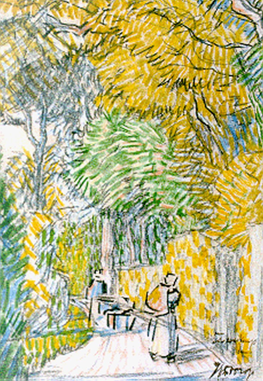 Jan Toorop Kunstwerk • Aquarell • Zeichnung • zuvor zu verkaufen A country road with strollers