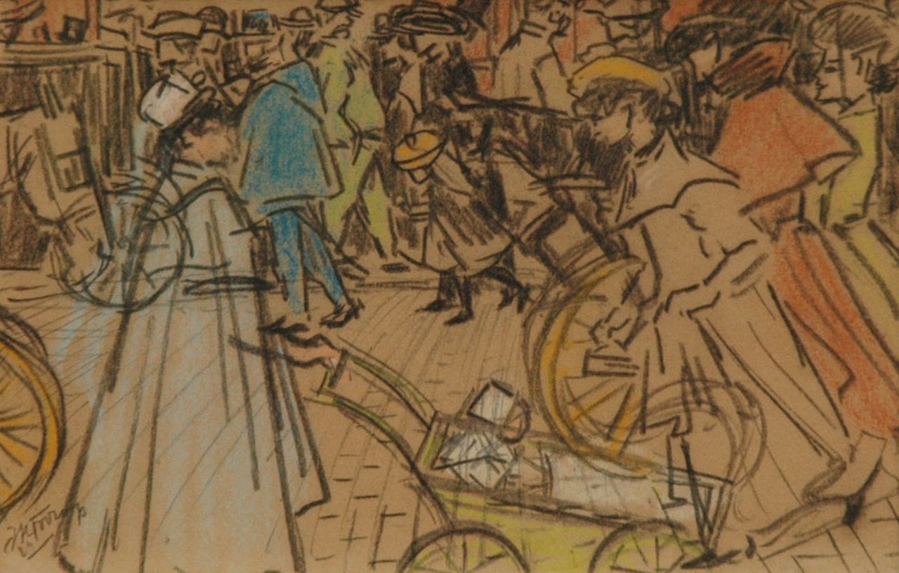 Jan Toorop Kunstwerk • Aquarell • Zeichnung • zuvor zu verkaufen Figures on a boulevard in Paris