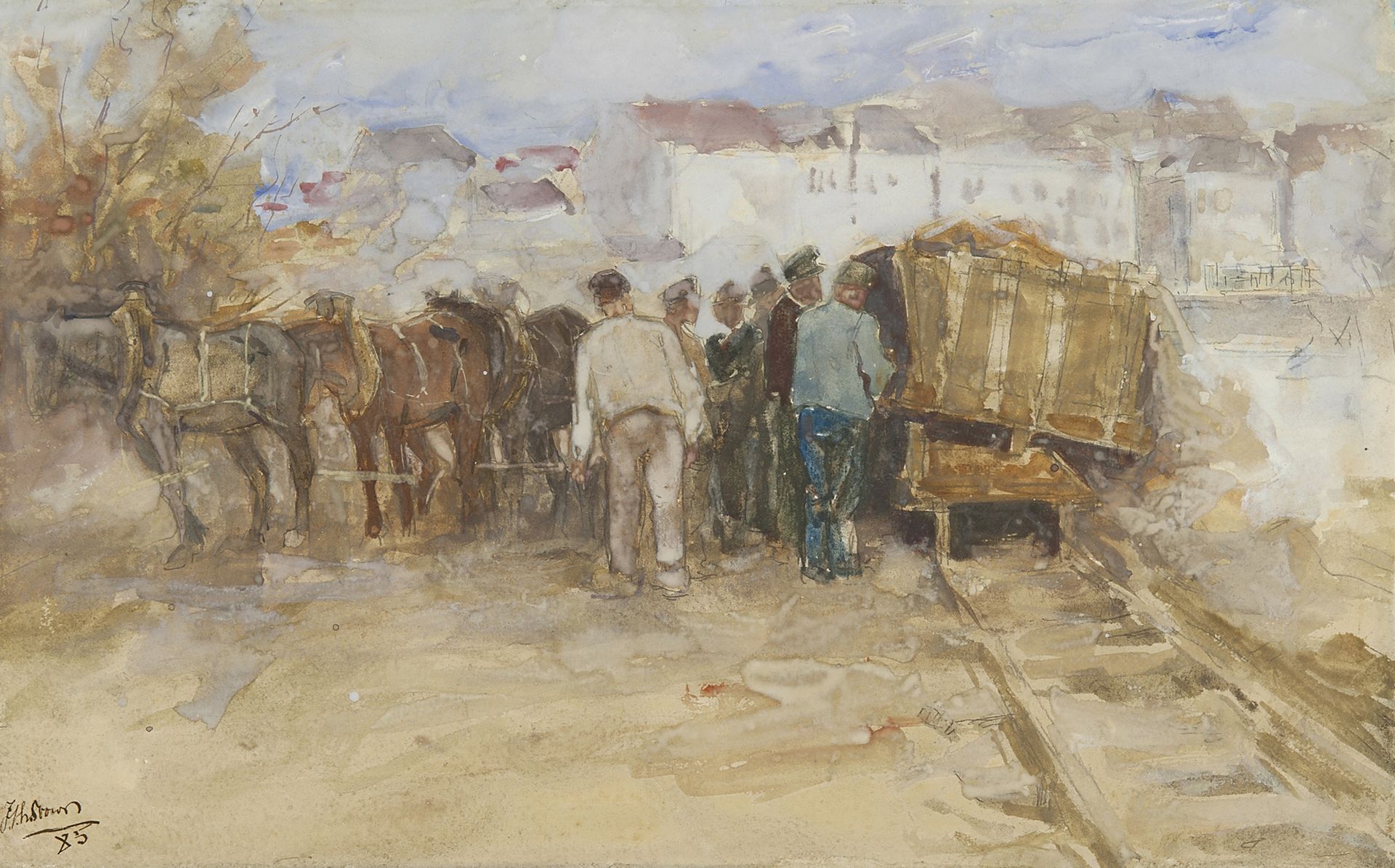 Jan Toorop Kunstwerk • Aquarell • Zeichnung • zuvor zu verkaufen In the harbour of Antwerpen