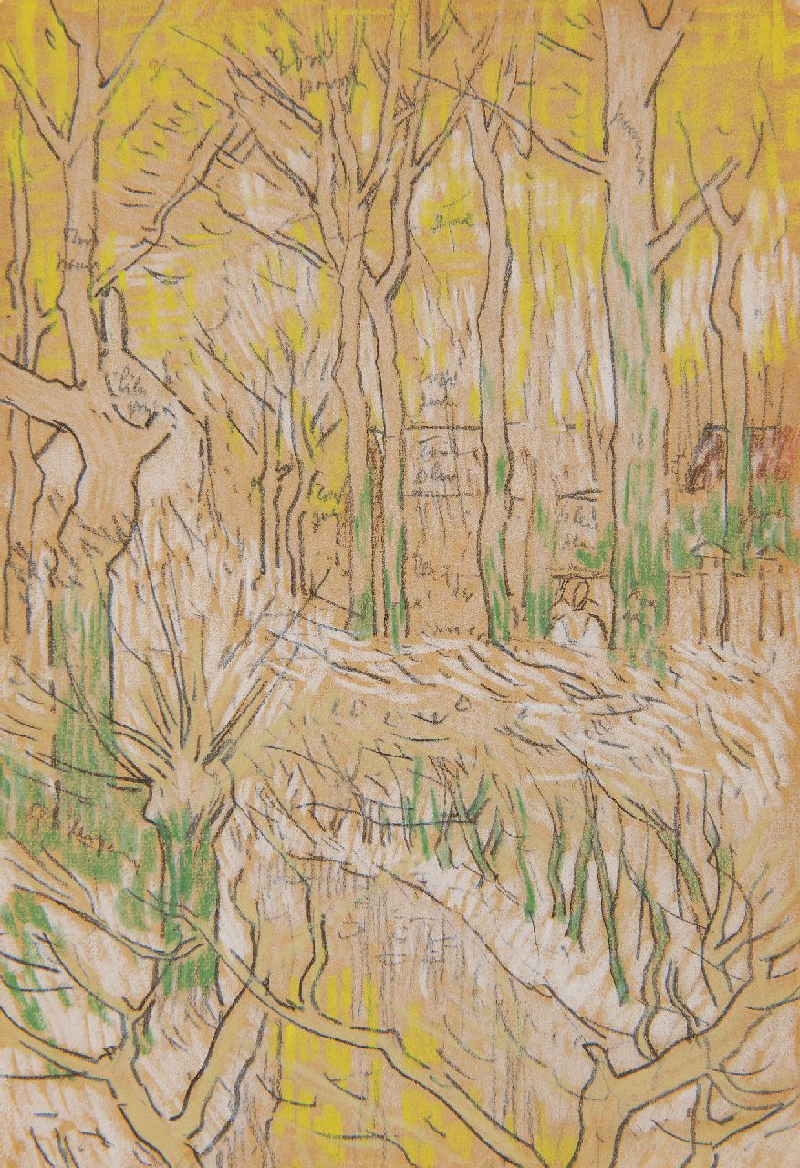Jan Toorop | Elegante Gesellschaft im Café de la Paix, Paris, Schwarze und Farbkreide auf Papier, 14,6 x 22,1 cm, Unterzeichnet u.r. und datiert 1904