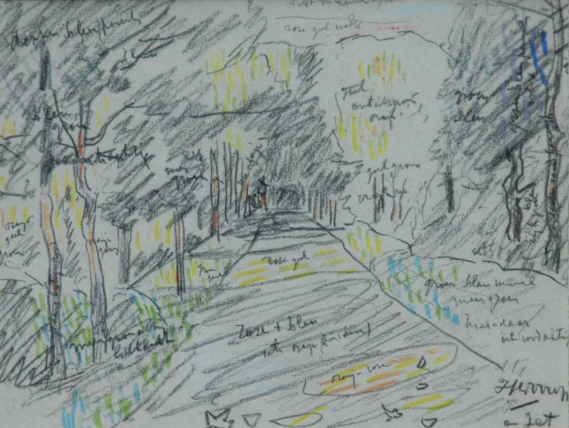 Jan Toorop Kunstwerk • Aquarell • Zeichnung • zuvor zu verkaufen Study of a country lane, with color indications