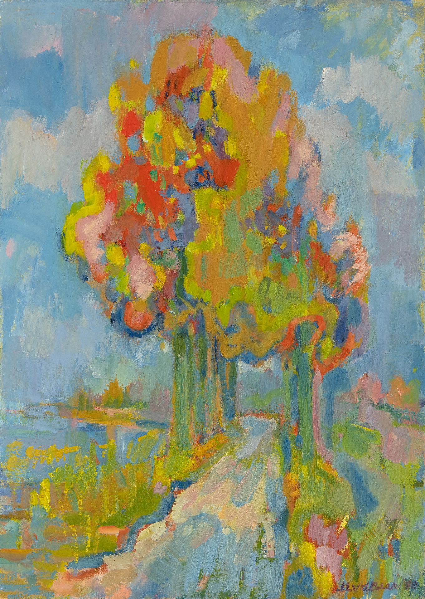 Der De Ploeg-Maler und Schüler von Jan Jordens, Jan van der Baan, liebte das Stadtleben in Groningen, das er in gewagten Farben kräftig festhielt. Er war auch eines der 'segelenden' Ploeg-Mitglieder. In seinen Freilichtgemälden des Wassers beleben Segelboote, Segler und Schwimmer seine Kompositionen, während er gleichzeitig auf Raum und Atmosphäre achtet. Van der Baan fertigte auch Holzschnitte, Linolschnitte und Lithografien an und arbeitete als Glaser.