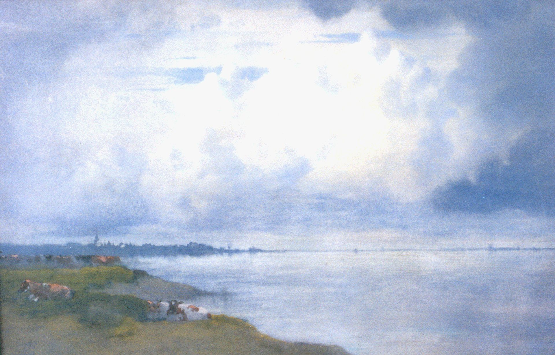 Jan Voerman sr. Kunstwerk • Aquarell • Zeichnung • zuvor zu verkaufen A view of the river IJssel