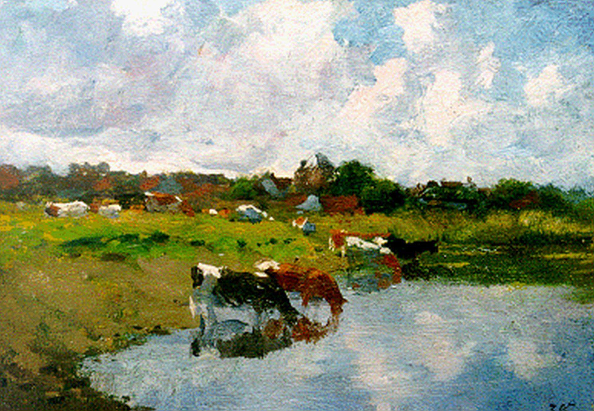 Jan Voerman sr. Kunstwerk • Gemälde • zuvor zu verkaufen Watering cows
