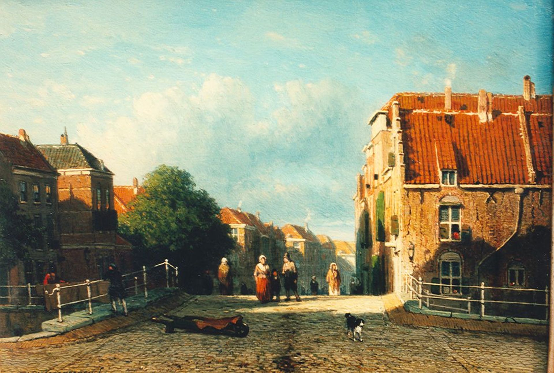 Jan Weissenbruch war einer der wichtigsten Vertreter des Realismus in der holländischen Malerei der 1850er und 60er Jahre. Er wurde an der Haager Zeichenakademie unterrichtet und spezialisierte sich dann auf das Malen von Straßenszenen in unseren alten Städten und Städten an den großen Flüssen. Sein Werk steht in der romantischen Tradition, aber der Maler löste sich allmählich von dieser zugunsten einer impressionistischeren Herangehensweise. Er hat ein Auge für Licht und Atmosphäre, die später von den Malern der Haager Schule weiterentwickelt wurden.