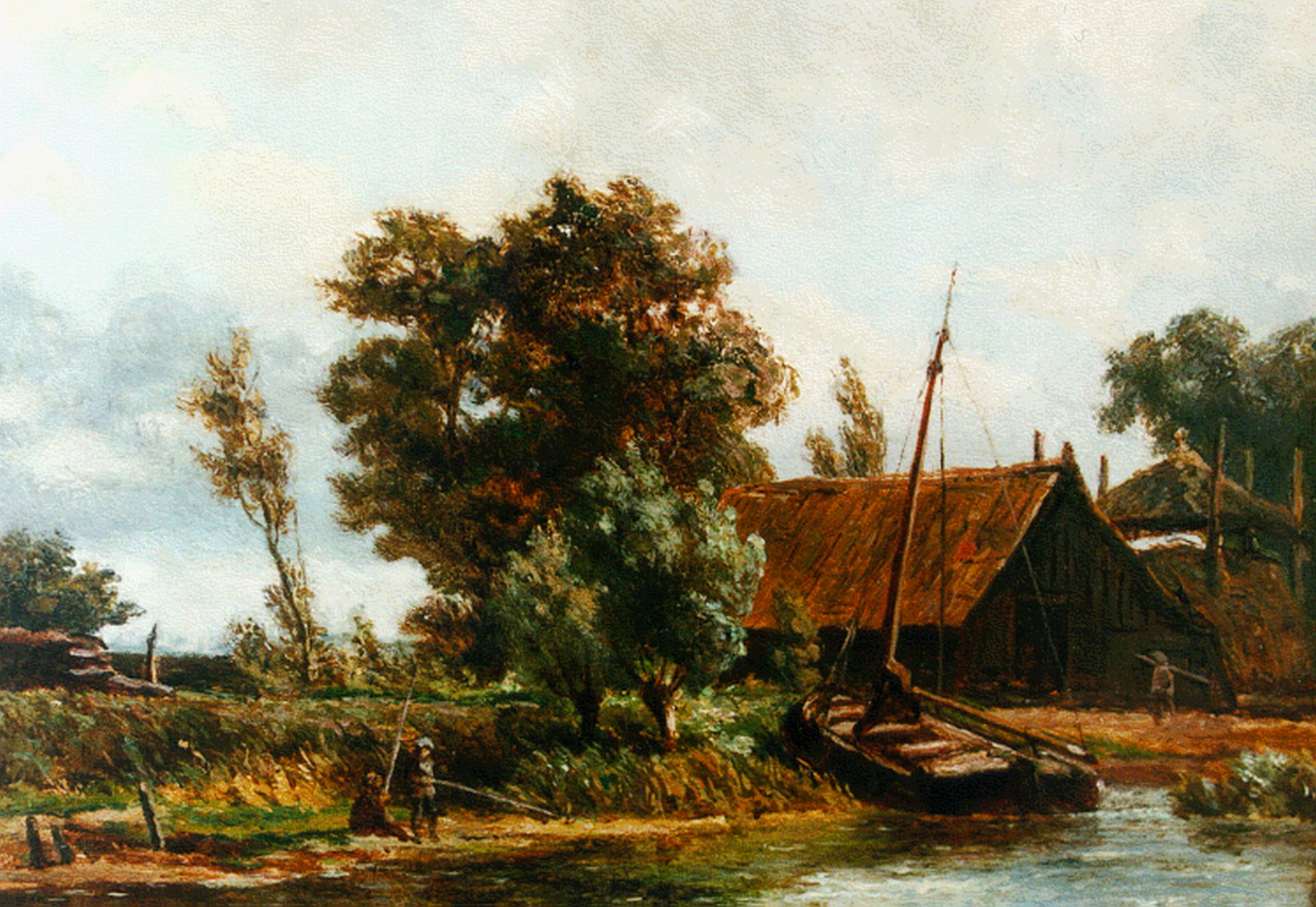 Jan Willem van Borselen Kunstwerk • Gemälde • zuvor zu verkaufen Figures on the riverbank