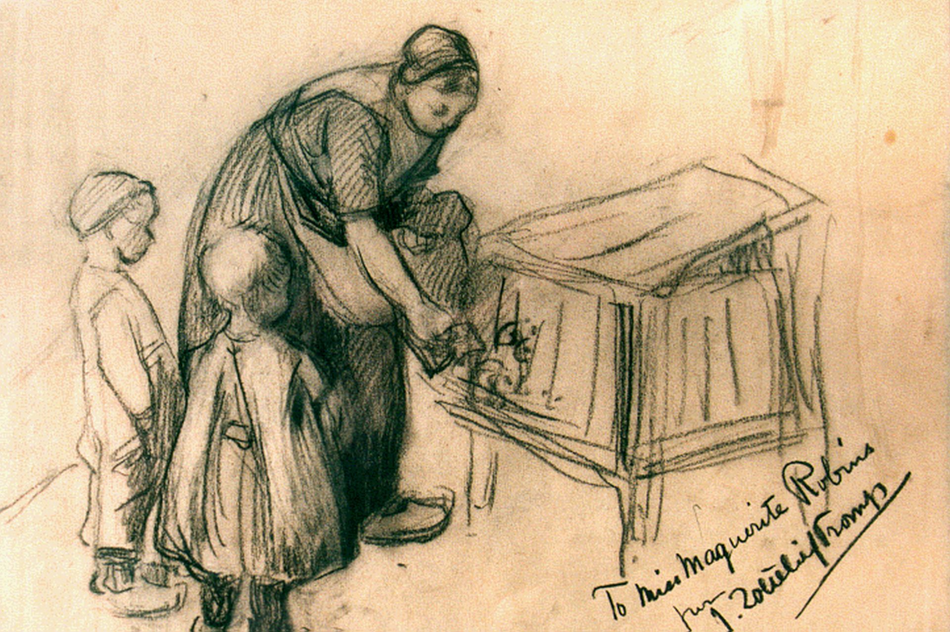 Jan Zoetelief Tromp Kunstwerk • Aquarell • Zeichnung • zuvor zu verkaufen Feeding a rabbit