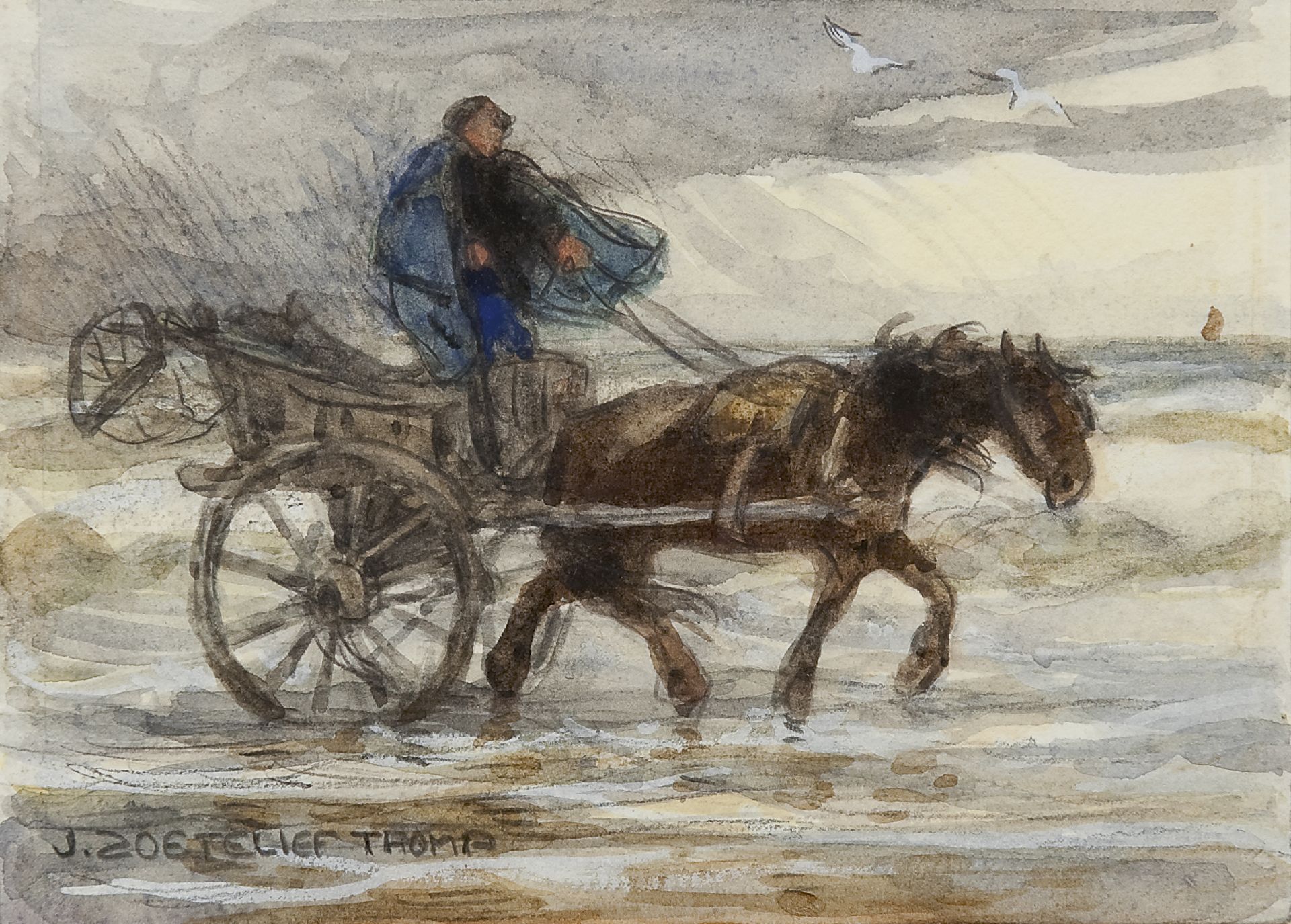 Jan Zoetelief Tromp Kunstwerk • Aquarell • Zeichnung • zuvor zu verkaufen Shell fisherman with horse-and-carriage