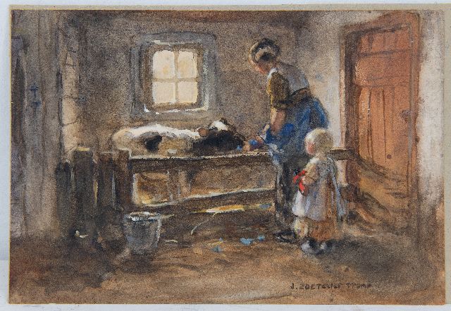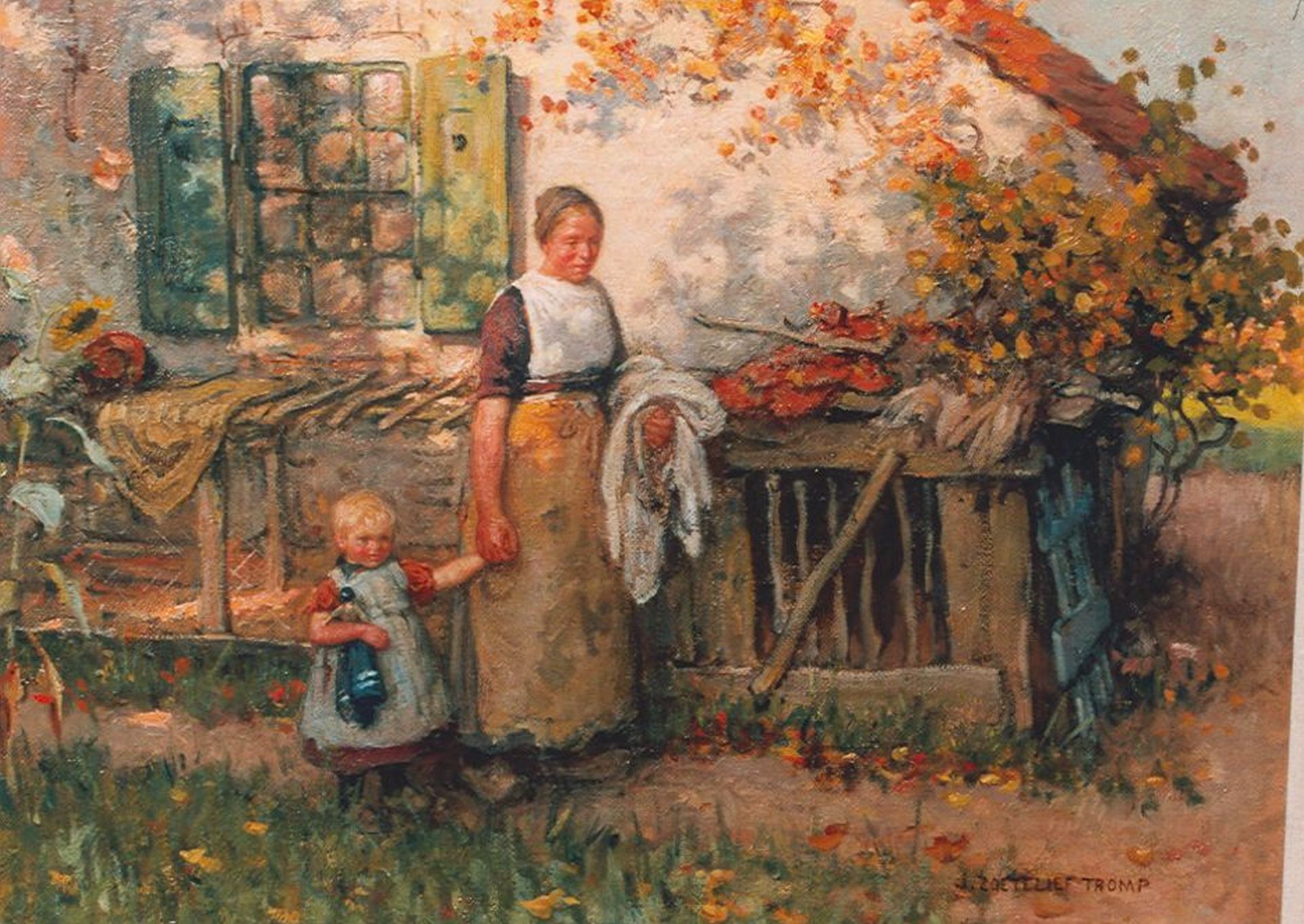 Jan Zoetelief Tromp Kunstwerk • Gemälde • zuvor zu verkaufen A farmer's wife with child in the garden