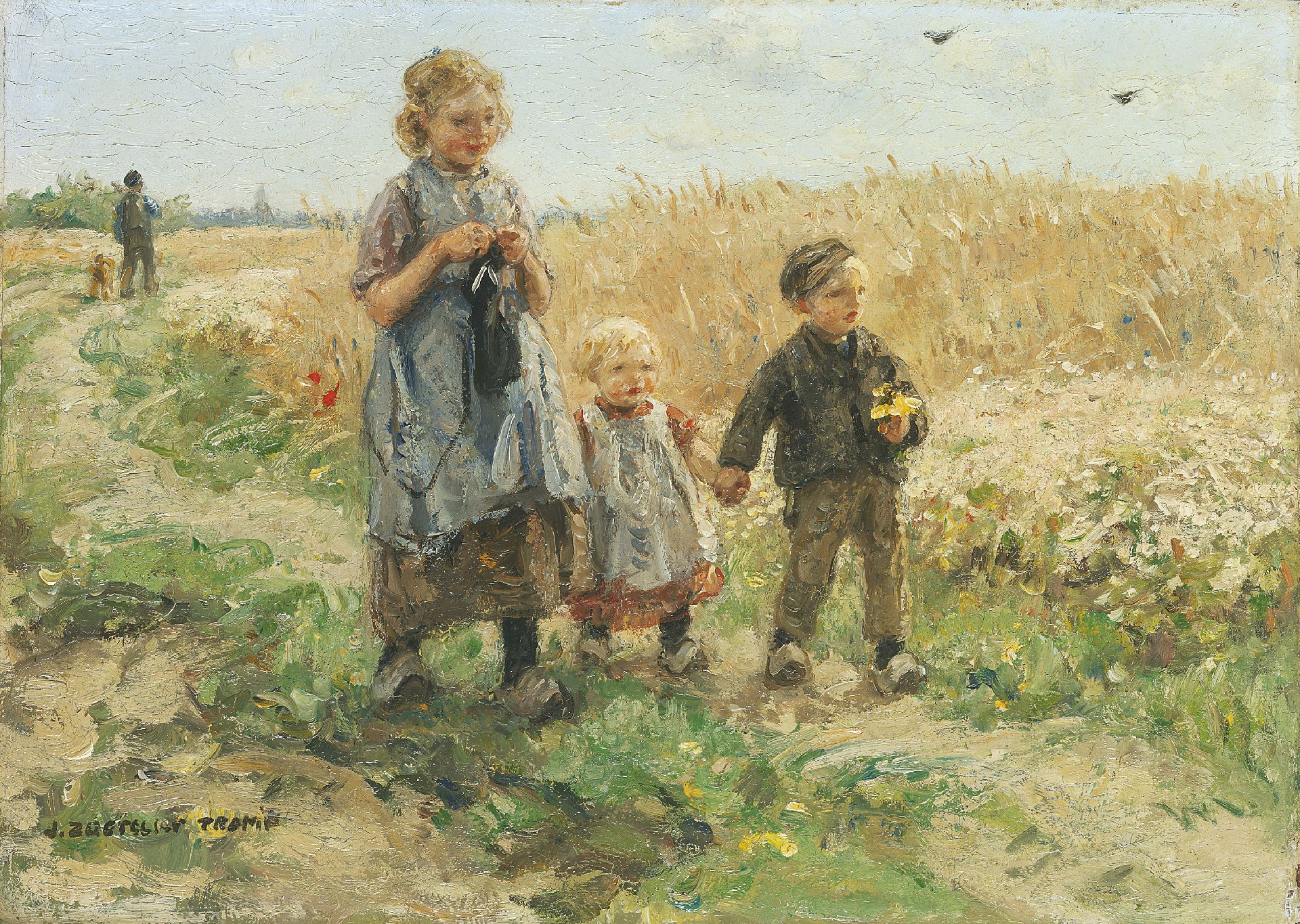 Jan Zoetelief Tromp Kunstwerk • Gemälde • zuvor zu verkaufen Children in a corn field
