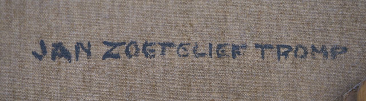 Blaricum und Katwijk waren die zwei Dörfer wo Jan Zoetelief Tromp am meisten malte. In Blaricum fand er ab 1899 das Bauernleben, Katwijk‚ entdeckte‘ er im Jahre 1905. Zunächst verbringt er dort nur die Sommerzeiten mit seiner Familie, ab 1914 wohnt er dort permanent. Er malt hier das Leben der Fischerbevölkerung, aber vor allen Dingen Vorstellungen mit Kindern: spielend auf dem Strand, Ziegen hütend oder rückkehrend aus den Dünen. Diese Szenen sind immer idyllisch und strahlen das Familienglück aus, das er vermutlich selber auch kannte. Weil der Maler taub war und einigermassen zurückgezogen lebte, wählte er seine Frau und Kinder am liebsten als Modell.