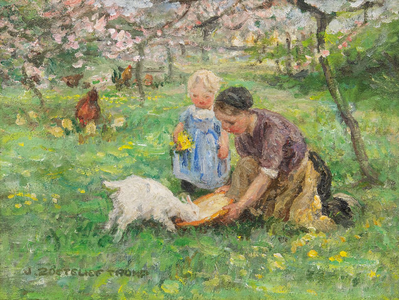 Jan Zoetelief Tromp Kunstwerk • Gemälde • zuvor zu verkaufen Die Ziege füttern