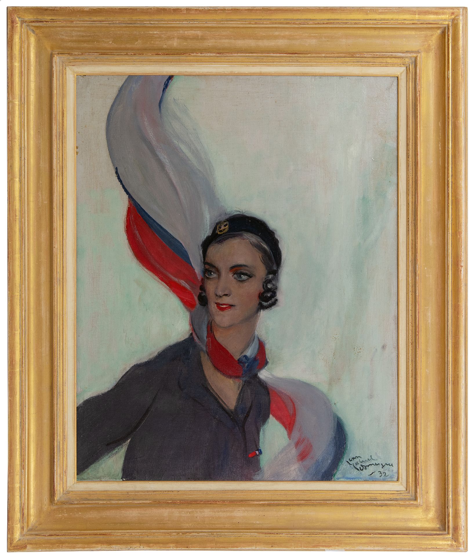 Jean-Gabriel Domergue Kunstwerk • Gemälde • zu verkaufen Junge Frau mit farbigem Schal